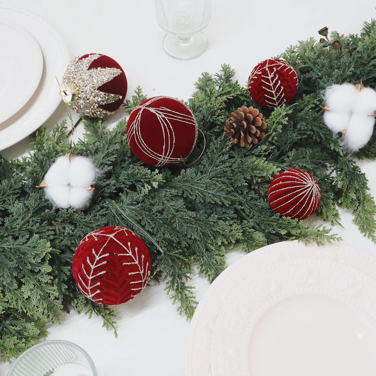 4inch Velvet Ornaments for Christmas Tree, 9PCS Glitter Flocked Christmas Ornaments Decorations Balls Set Decor Red