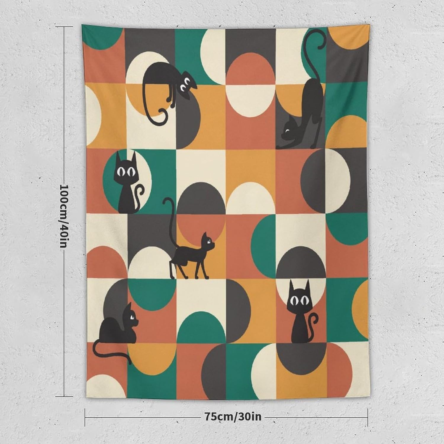 ICMOLYYENLO Boho Medieval Cat Tapestry, Abstract Atomic Starburst Geometric Aesthetic Art Wall Hanging For Bedroom Living Room Dormitory 40x60 Inches