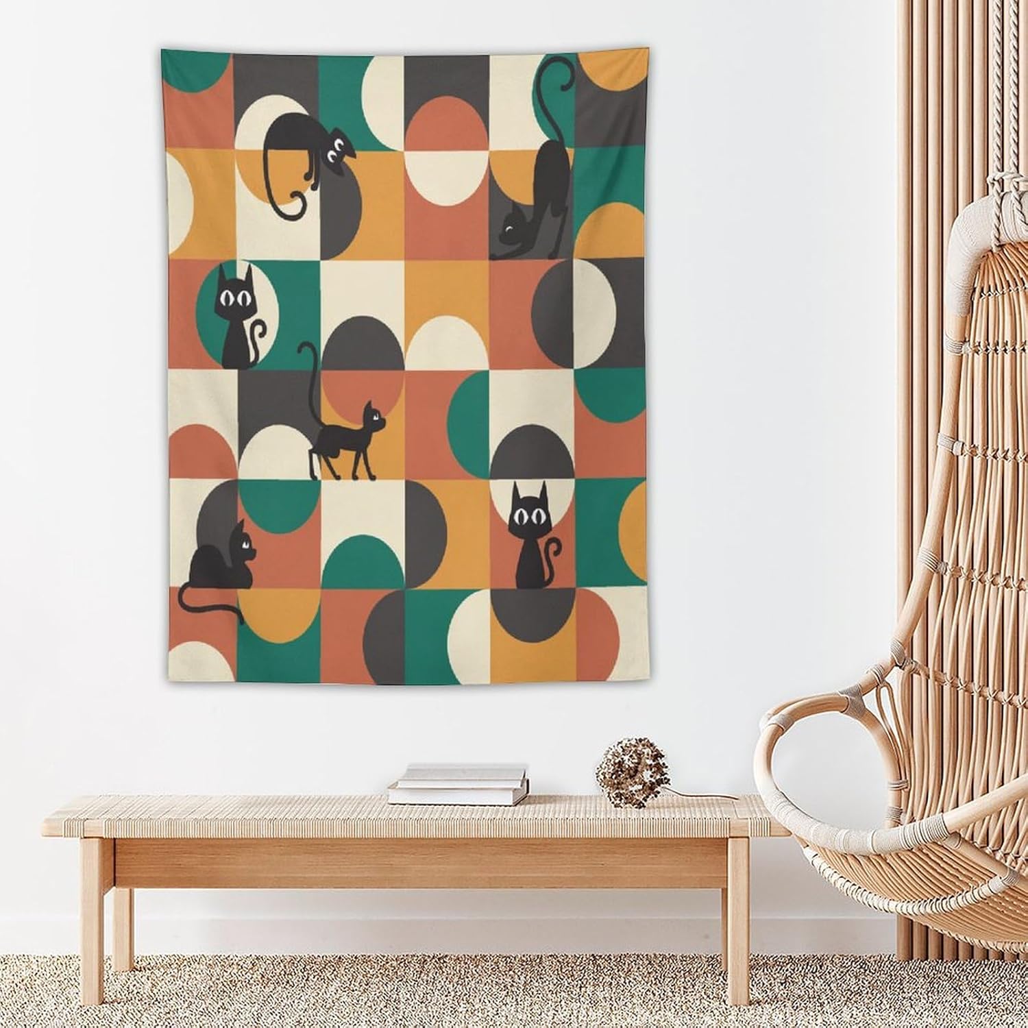 ICMOLYYENLO Boho Medieval Cat Tapestry, Abstract Atomic Starburst Geometric Aesthetic Art Wall Hanging For Bedroom Living Room Dormitory 60x80 Inches
