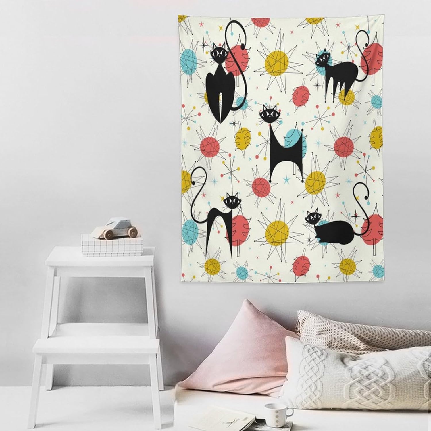 ICMOLYYENLO Abstract Cat Tapestry, Medieval Abstract Atomic Star Cat Vintage Home Wall Hanging Art Tapestry for Bedroom Living Room Dormitory 60x80 Inch