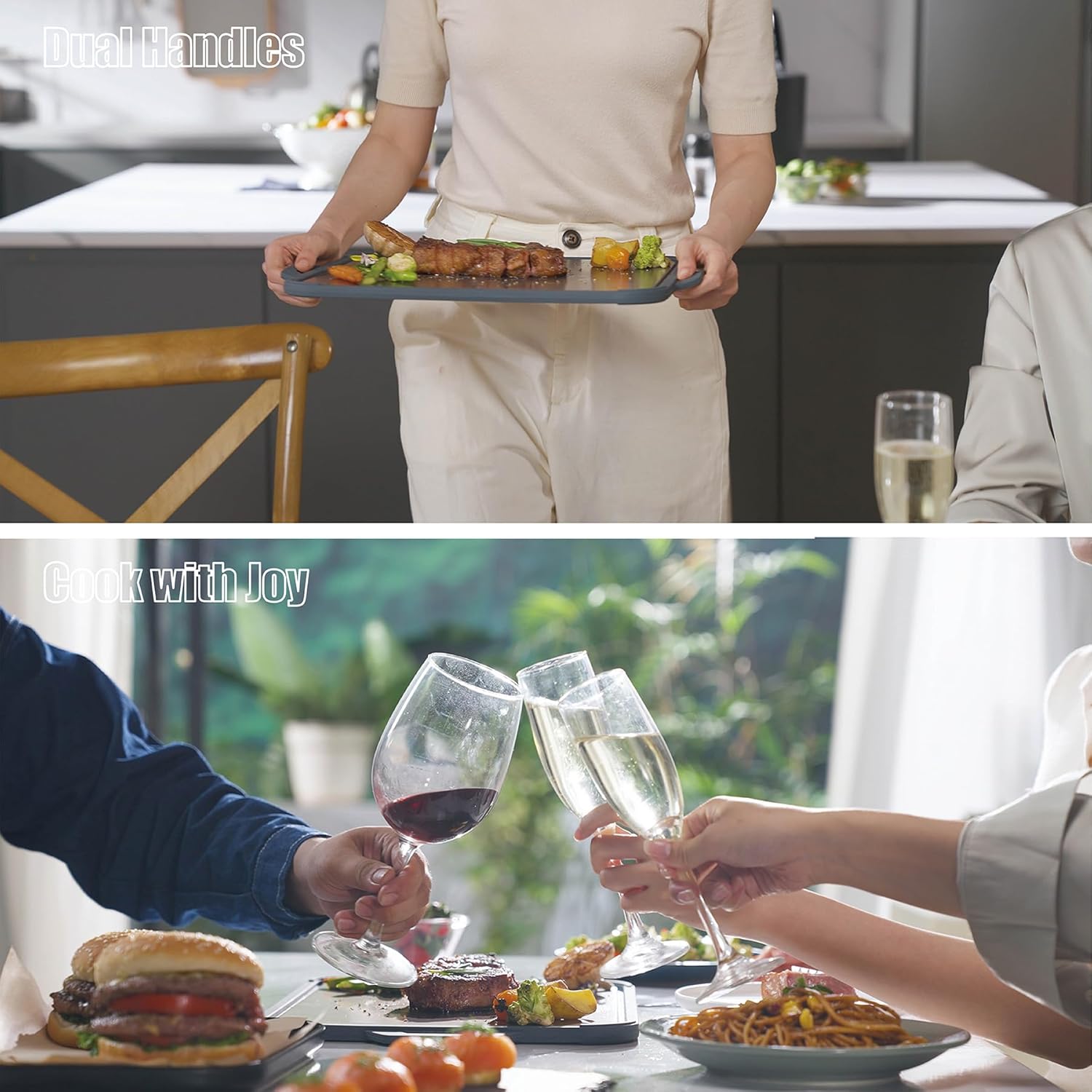 - Effortless Cleanup: Hand Wash or Dishwasher—You Choose! This cutting board makes cleanup a cinch—whether you’re rinsing it by hand or popping it in the dishwasher. For peak performance, use the Quick, Gentle, or Normal cycles—they’ll blast away residue without damaging the board’s durable materials. Both methods keep the board looking fresh and extend its lifespan, so you can keep chopping like a pro for years. No stress, no hassle—just more time to enjoy your meals!