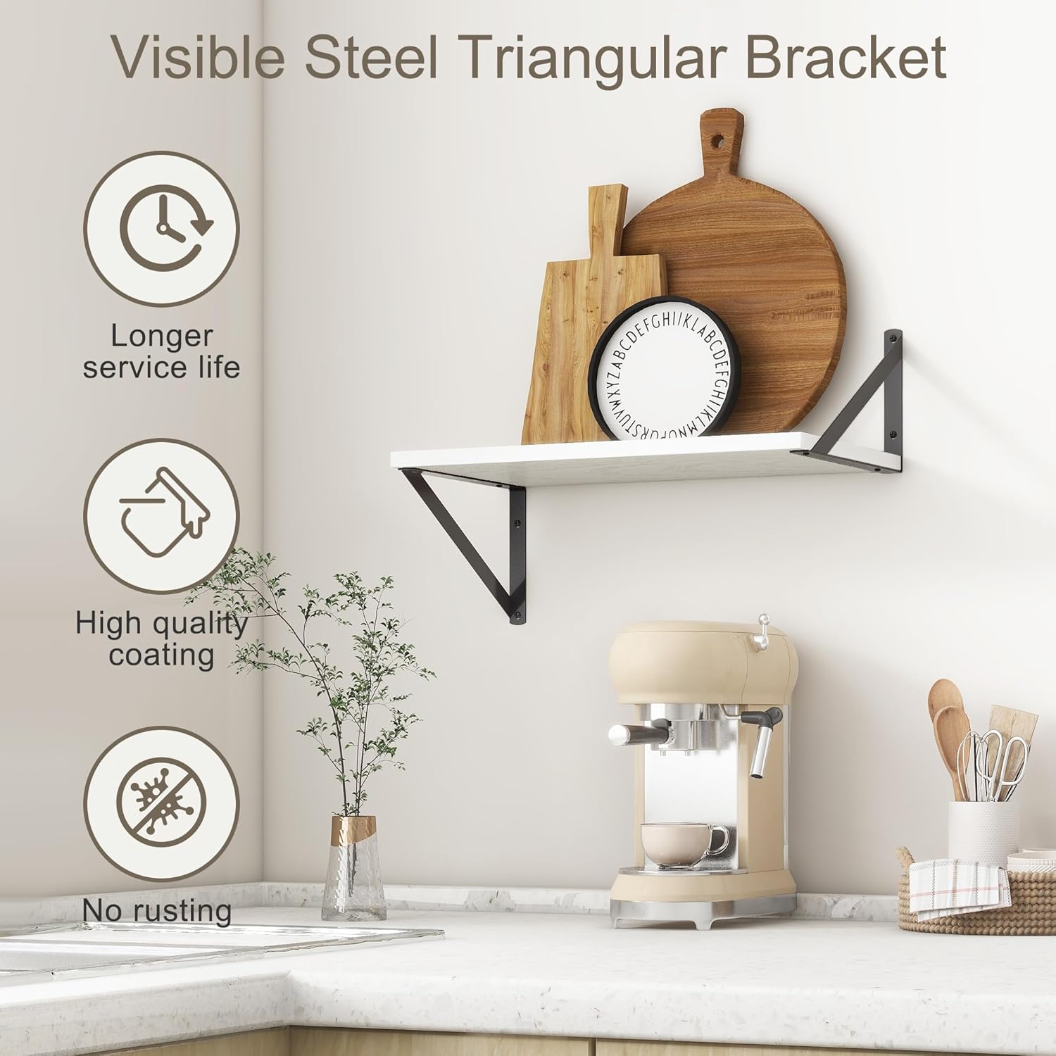 - 【FARMHOUSE RUSTIC WALL SHELF】These floating shelves are made of premium engineered wood board and visible triangular bracket. The rustic wooden grain surface add character and warmth to any modern or traditional interior with these deep floating shelves, contrast shelves at staggering heights on the wall or mount side-by-side or in the corner for a clean streamlined look.