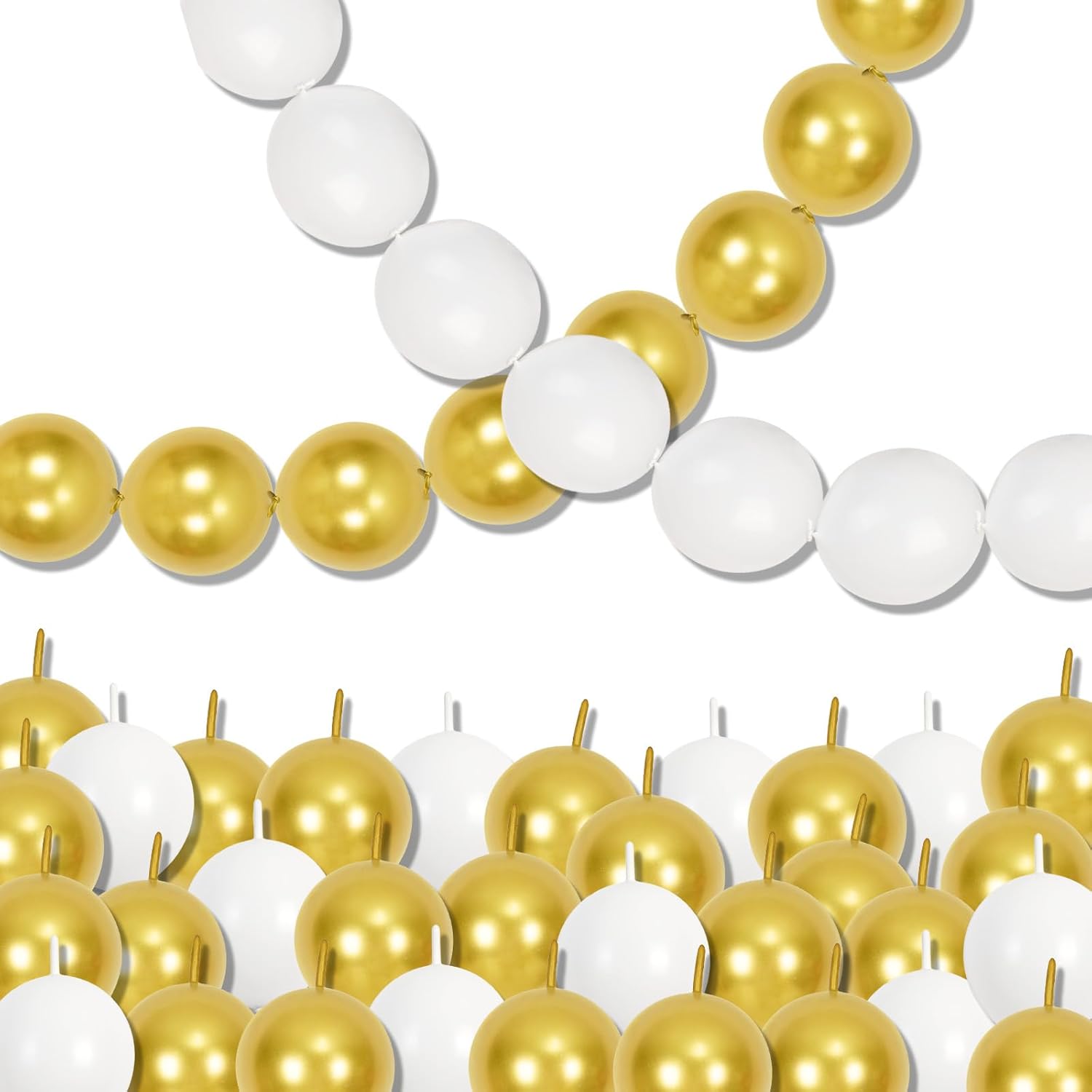 - Small Link Balloon Set - You will receive 100 pcs 6 inch white gold link balloons. Including matte white balloons 50pcs and metallic gold balloons 50pcs. Our connecting balloons have a unique tail design that allows balloons link to be easily. More convenient and easier to assemble than regular balloons.