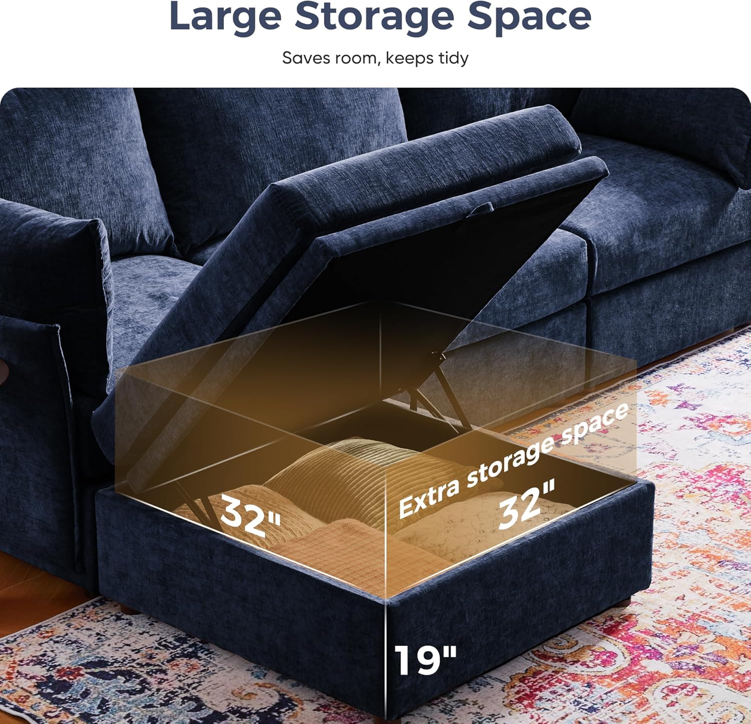 - 💡 Stylish and Spacious Sectional Sofa - A blend of modern elegance and comfort, this blue sofa is ideal for contemporary interiors. Customize seating and shape by adding or removing modules to fit your needs. It's perfect for your living room, family room, bedroom, or office. Overall size: 198.6" W × 100.5" D × 36" H, seat width: 32", seat depth: 24.5".