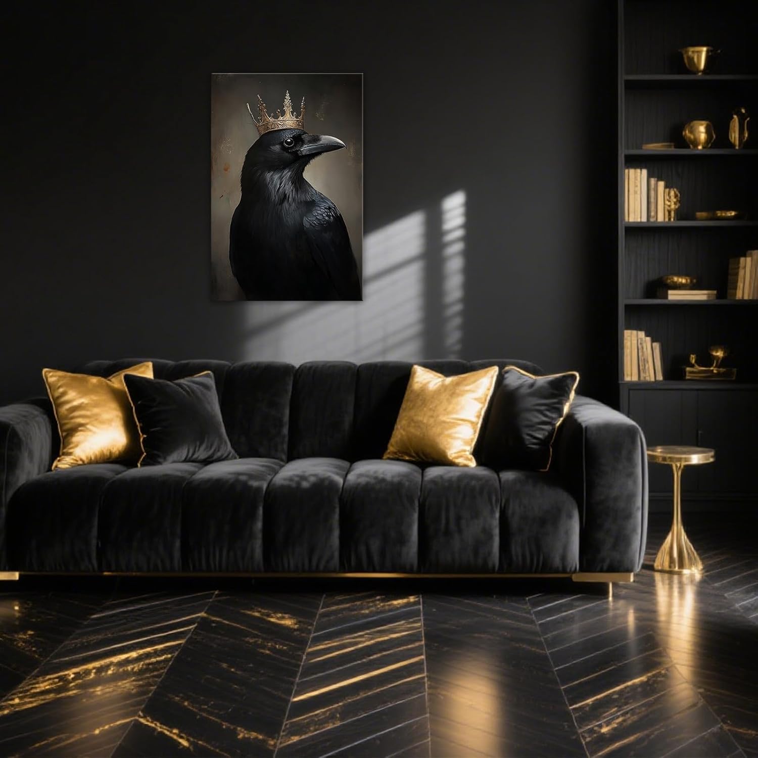 OAAPITI Raven King Wall Art Mysterious Black Bird Painting Dark Gothic Animal Canvas Print for Living Room Bedroom Home Office Inspirational Decor(Artwork-8,20"x30")