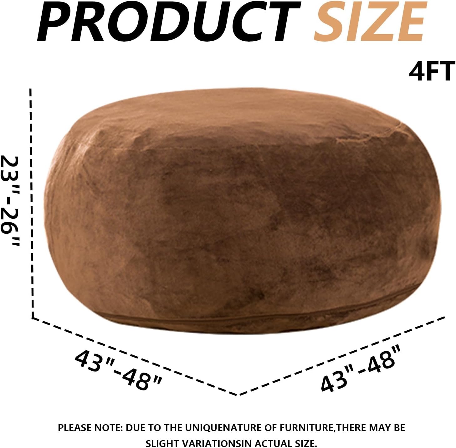 4FT Large Bean Bag Chairs,Big Adult Size Memory Foam Beanbags with Filler Included,Machine Washable Corduroy Cover,Soft Plush Gaming Bing Bag Puff Chair for Dorm, Living Room & Bedroom (Coffee Color)