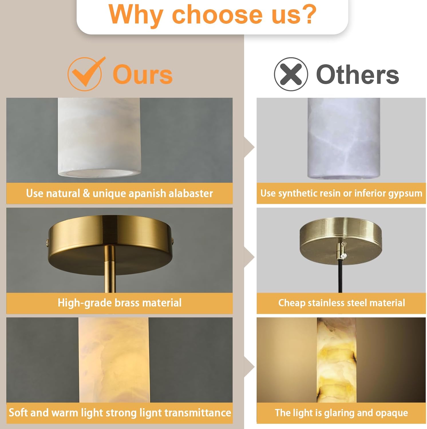 - 【Natural Spanish Alabaster】Alabaster light is made of alabaster imported from Spain, a natural stone solidified by volcanic lava for millions of years. It is strong and durable, and the lighting effect is bright and non-glare. Each piece of alabaster is carefully selected and hand-polished, presenting a delicate and charming appearance, enhancing the natural beauty of the stone.
