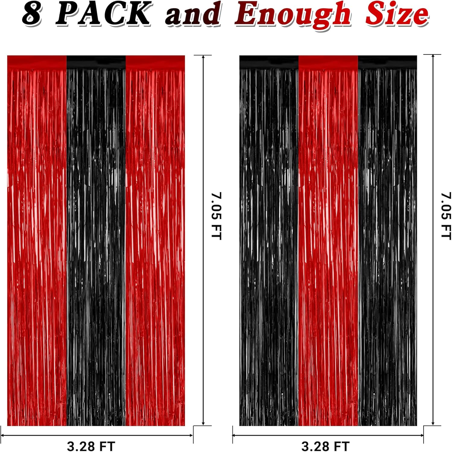 8 Pack Halloween Party Supplies, 3.28 FT x 7.05 FT Red and Black Foil Streamer, Metallic Fringe Curtains Tinsel Backdrop Party Streamer, Hanging Halloween Decorations Casino Party Decor