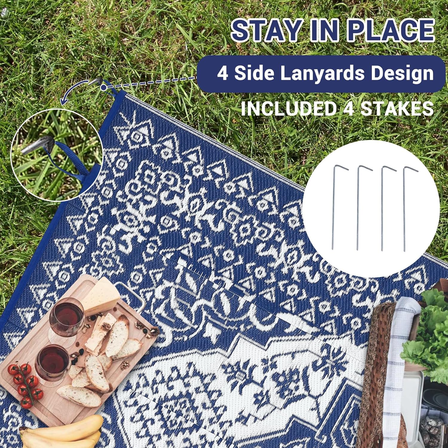 - Portable & Versatile: Lightweight and foldable, this waterproof camping rug comes with a handy carrying bag, making it perfect for road trips, RV adventures, picnics, or beach outings. Easily store or move it whenever you need extra style or comfort