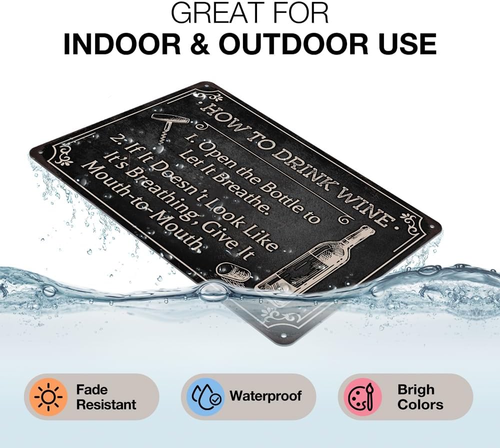 - Wine Themed Wall Decor:This vintage metal sign design with positive message,bright colors,will be an eye catcher decorations.Please note that any rust or scratch marks is part of the design and not actual rust