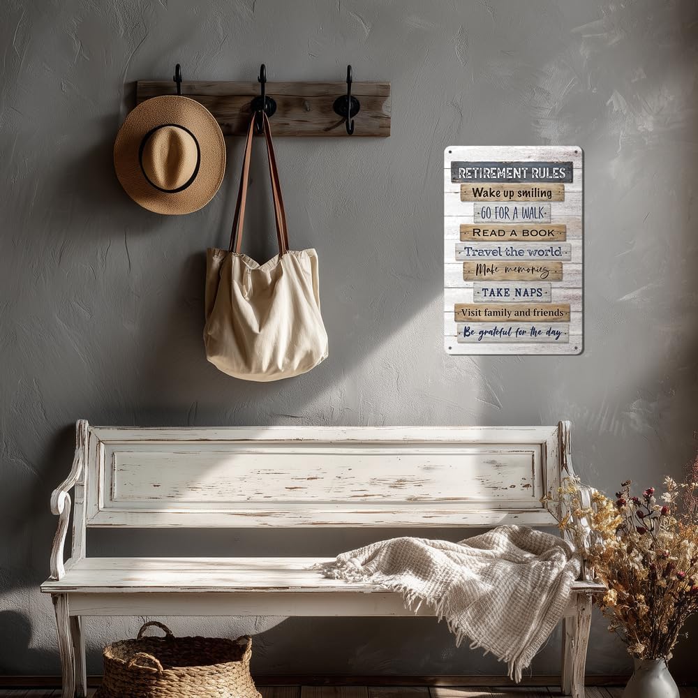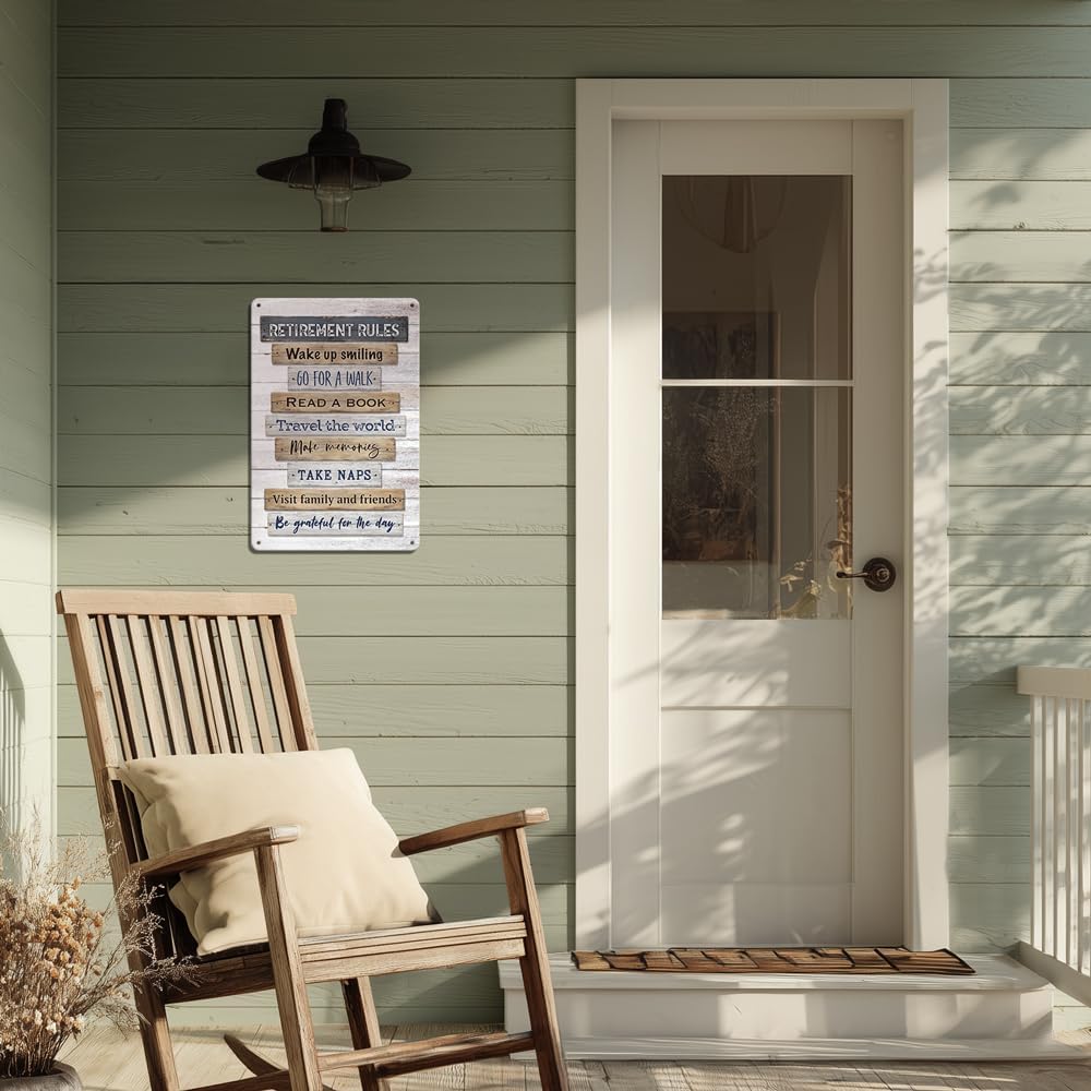 Heuhuww Retirement Gifts,Vintage Retirement Rules Metal Sign for Party Home Room Decorations Retiree Gift Ideas 12"x8"(H21)