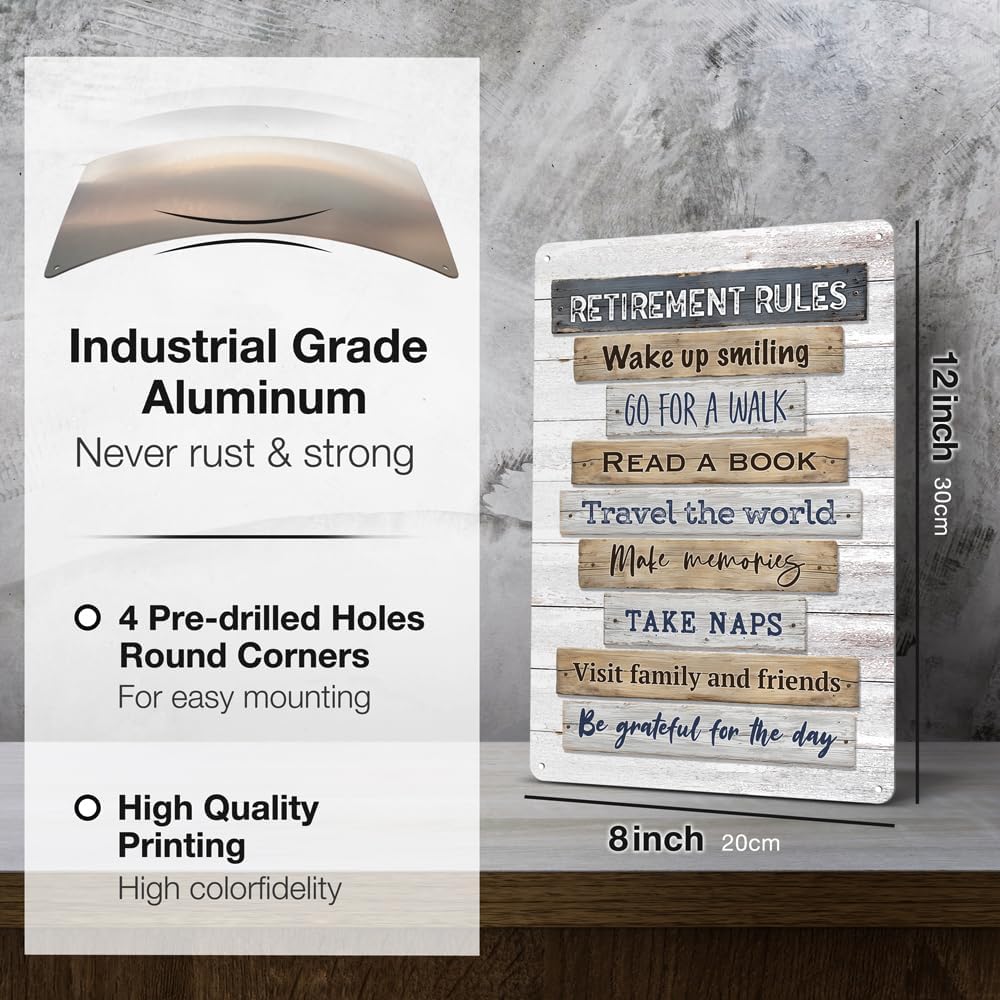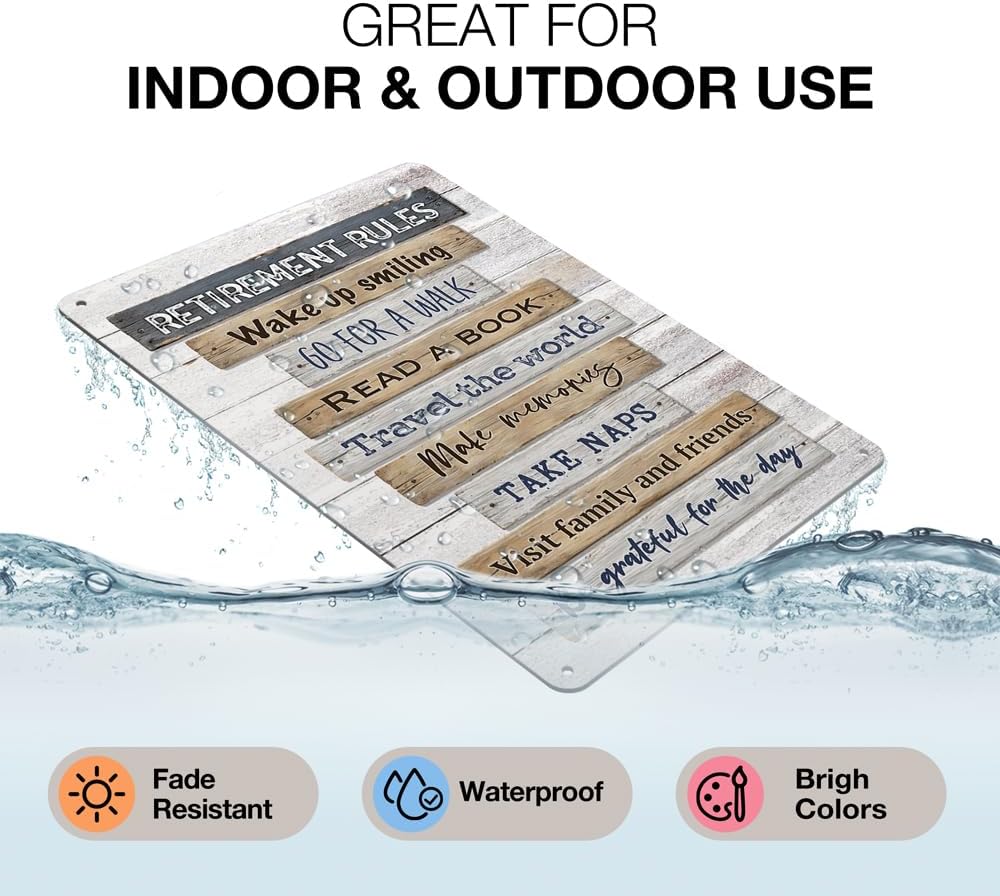 - Retirement Decoration:This vintage metal sign design with positive message,bright colors,will be an eye catcher decorations.Perfect for retirement party decorations funny or as a keepsake retirement sign to honor the retiree’s new chapter