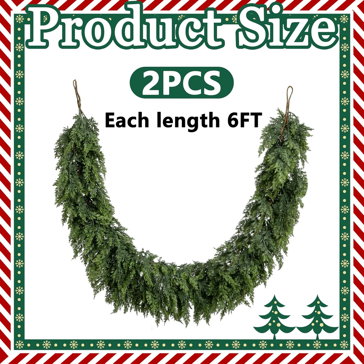 - Great Decoration: These artificial pine greenery garlands have hooks at both ends for easy hanging and can be matched with any Christmas theme decorations, such as Xmas pine branches, indoor mantle, wall, door, stair, room, etc. background decoration.
