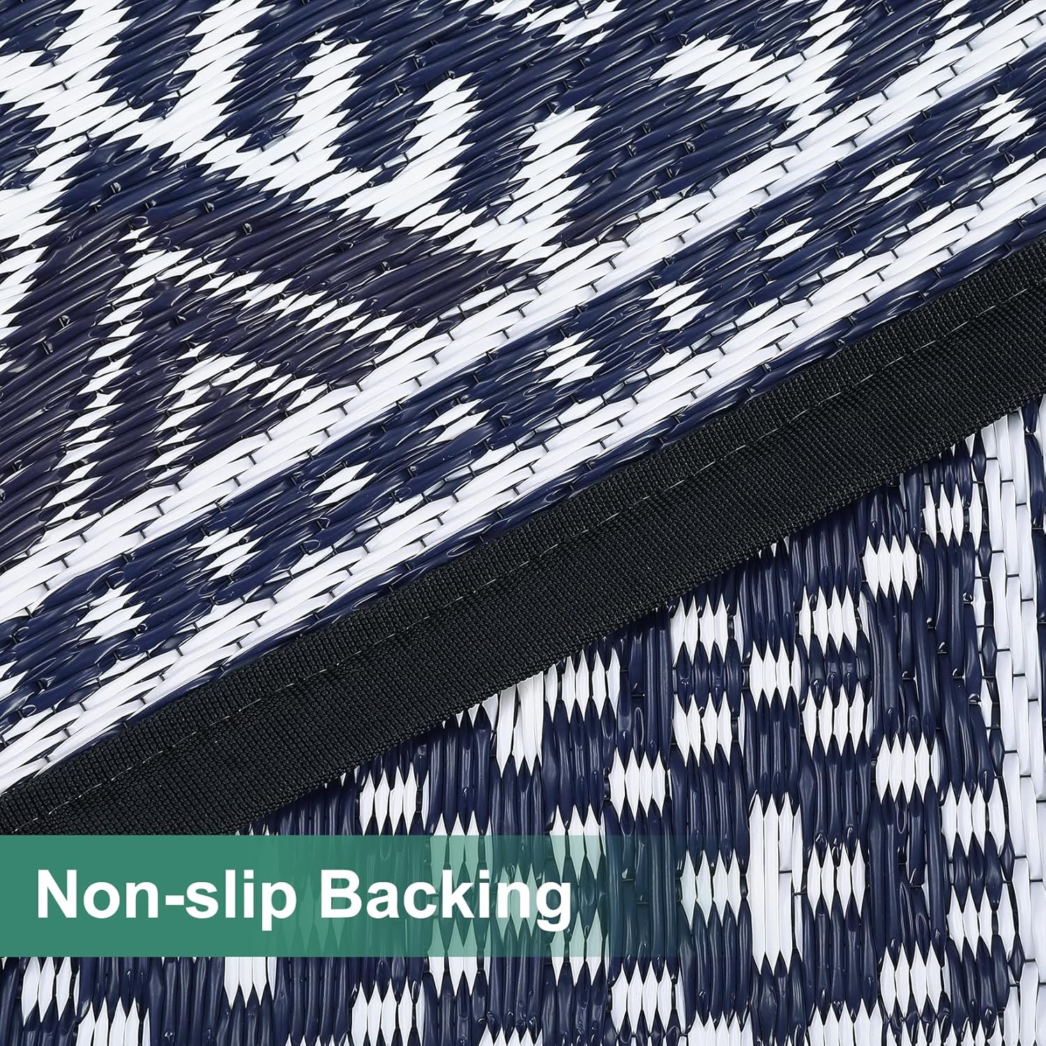 GAOMON Reversible Outdoor Rug 9'x18' Waterproof Plastic Straw Rug, Patio Rug, Large Modern Area Rug Carpet, Indoor Outdoor Rugs for Camping, Porch, Deck, Balcony, Backyard, Dark Blue/White(Bohemia)