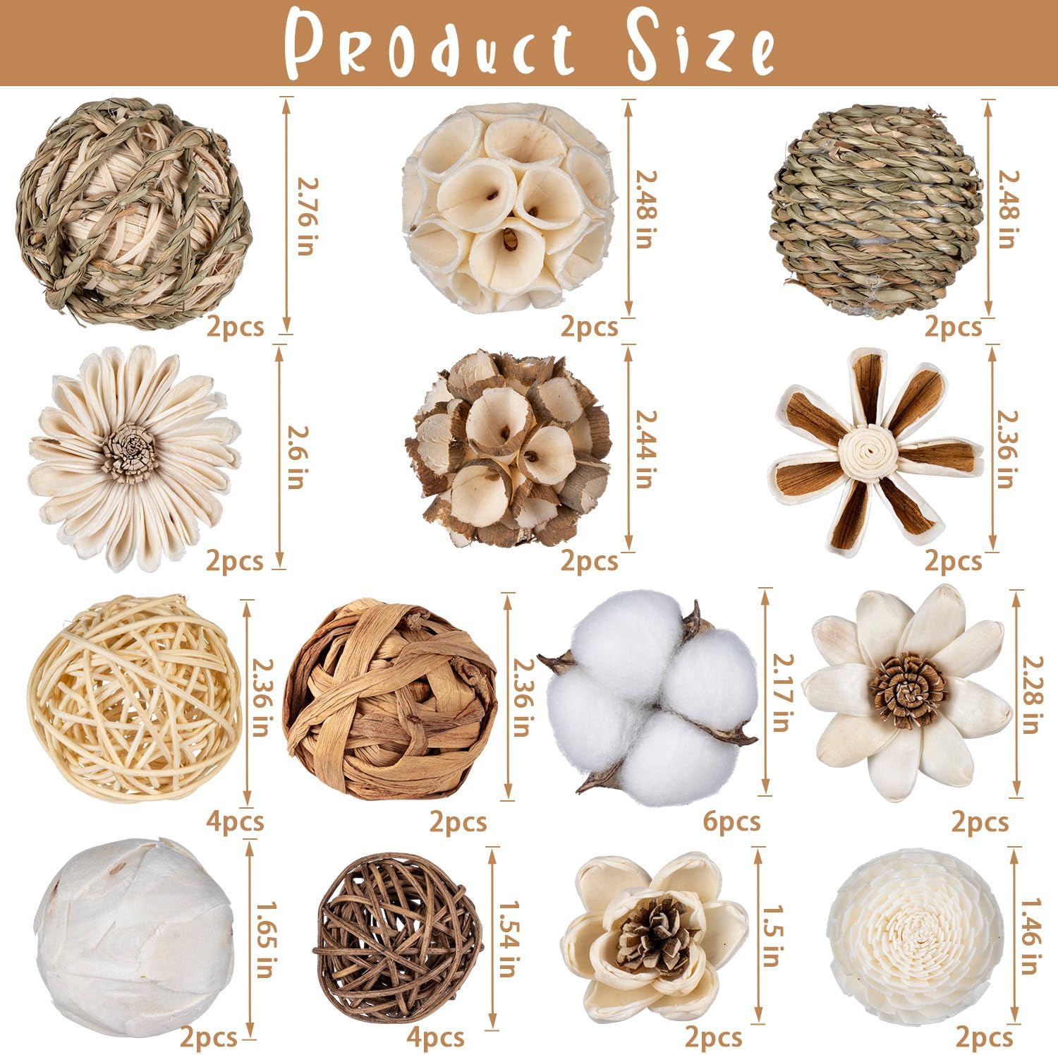 - Decorative Balls Bowl Filler: You will receive 36pcs different natural woven ball hemp rope balls and artificial wooden flower ball, sufficient quantity and can easily meet your decoration needs