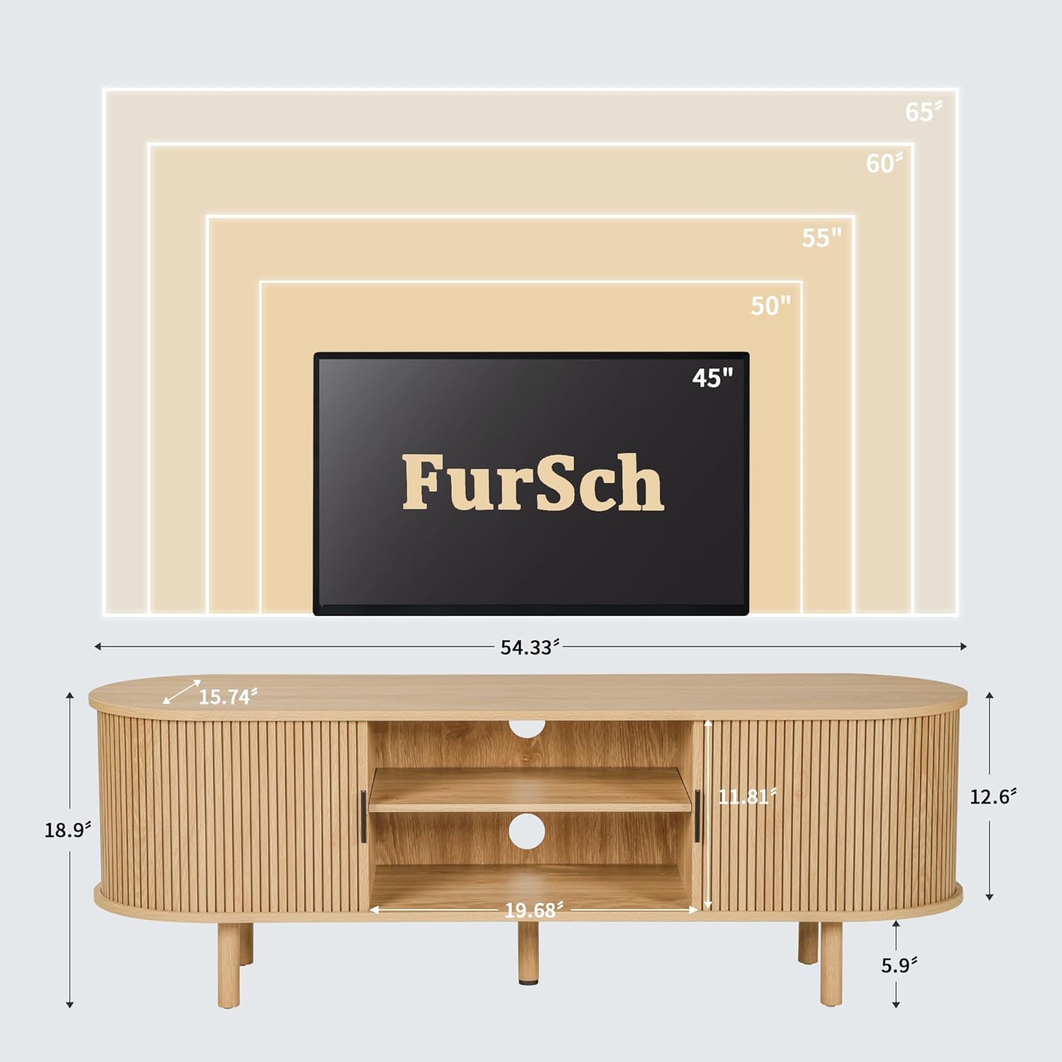 54" Tambour Door TV Stand,Wood Mid Century Modern TV Cabinet for Up to 65“ TV,Curved Edge Long TV Stand with Storage for Bedroom Living Room(Natural, 54inch)
