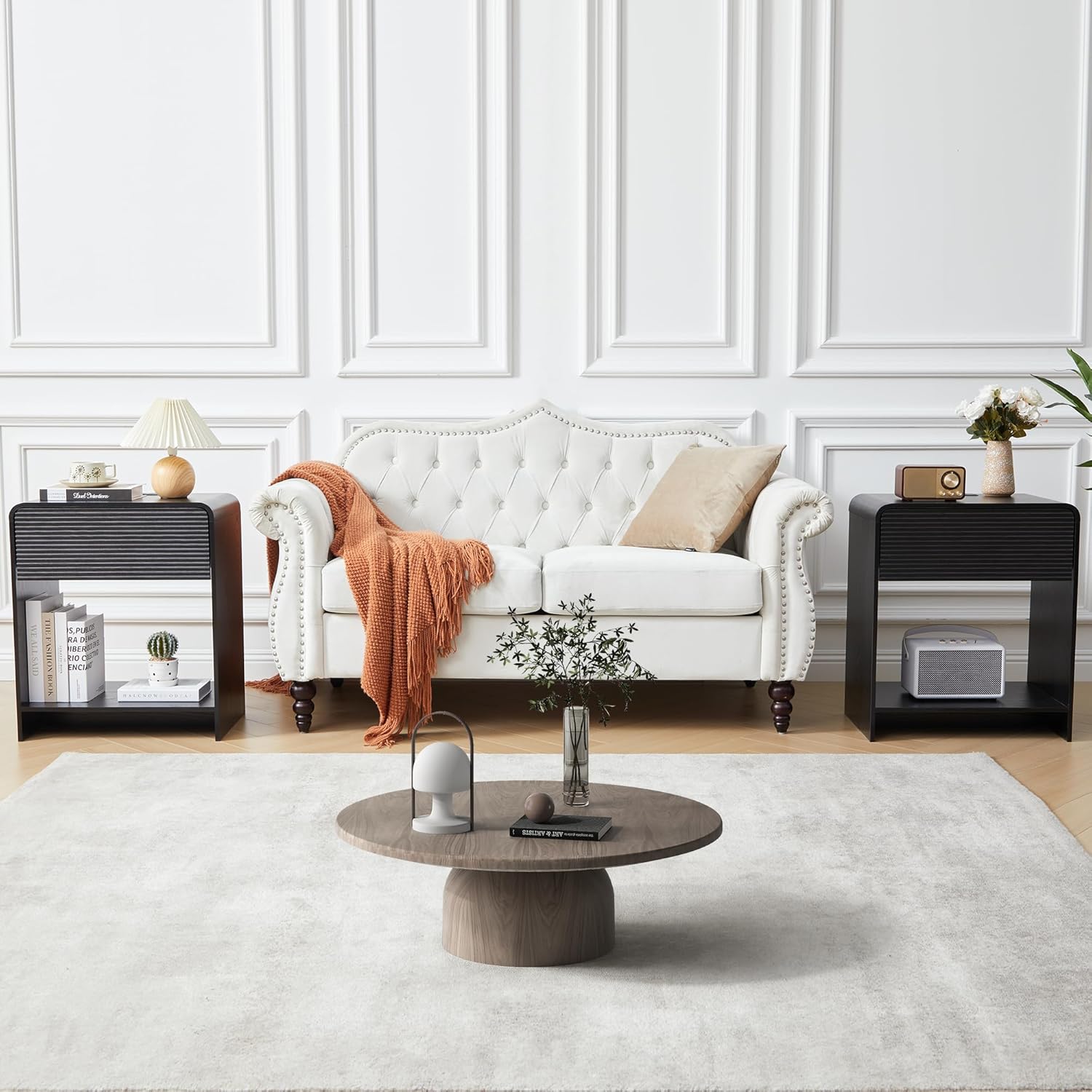 - ćSturdy & DurablećCrafted with a thickened high-quality board and scratch-proof, water-resistant surfaces, the fluted panel uses blister molding tech, the sturdy construction ensures stability and durability, making it a practical and long-lasting addition to your bedroom. This side table is solid and free from any odd smell, allowing you to rest assured when placing it beside your bed.