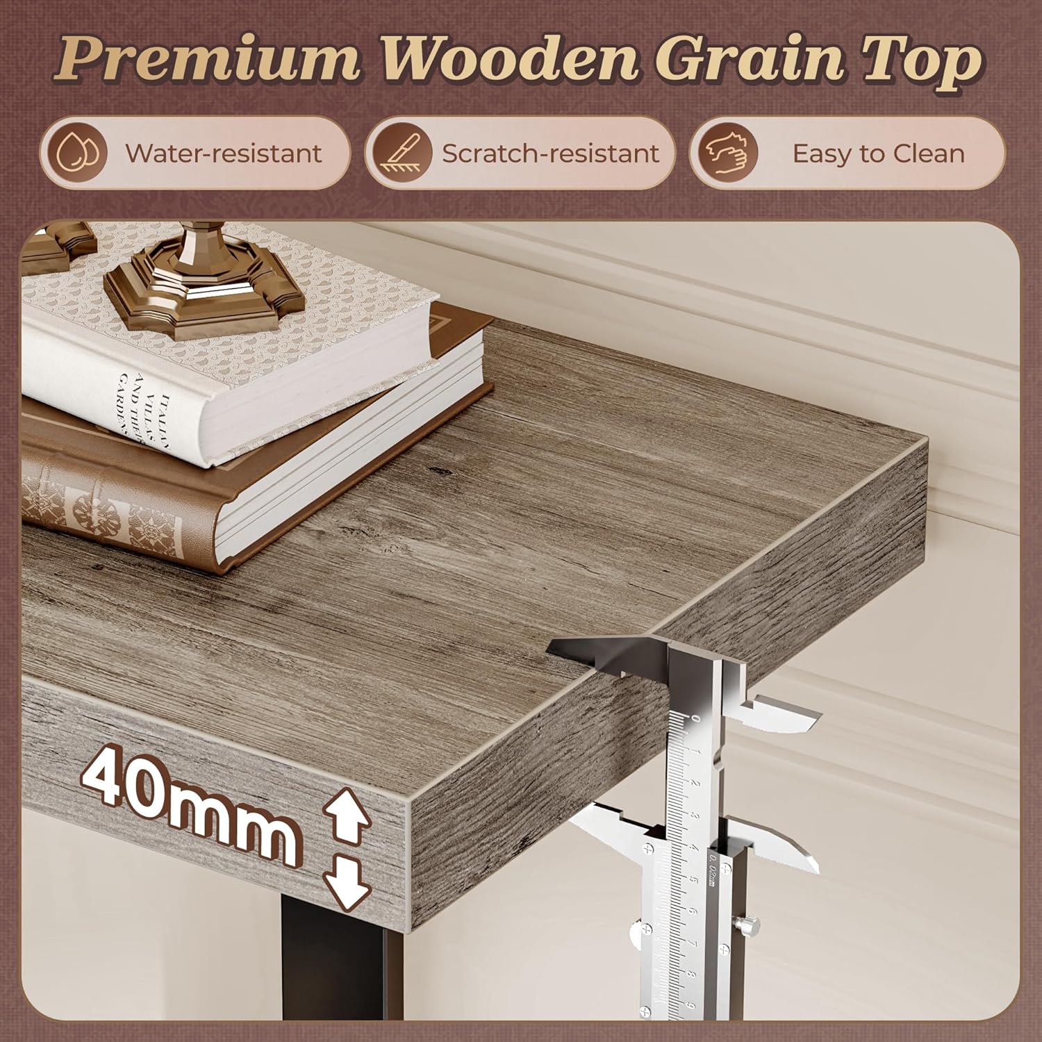 - 【Modern Gray Entry Table】Blending sleek modern charm with subtle industrial flair, this sofa console table features a refined gray woodgrain top paired with a sturdy black T-shaped metal frame. It’s a cool yet contemporary accent that enhances the style of your entryway, hallway, or living room