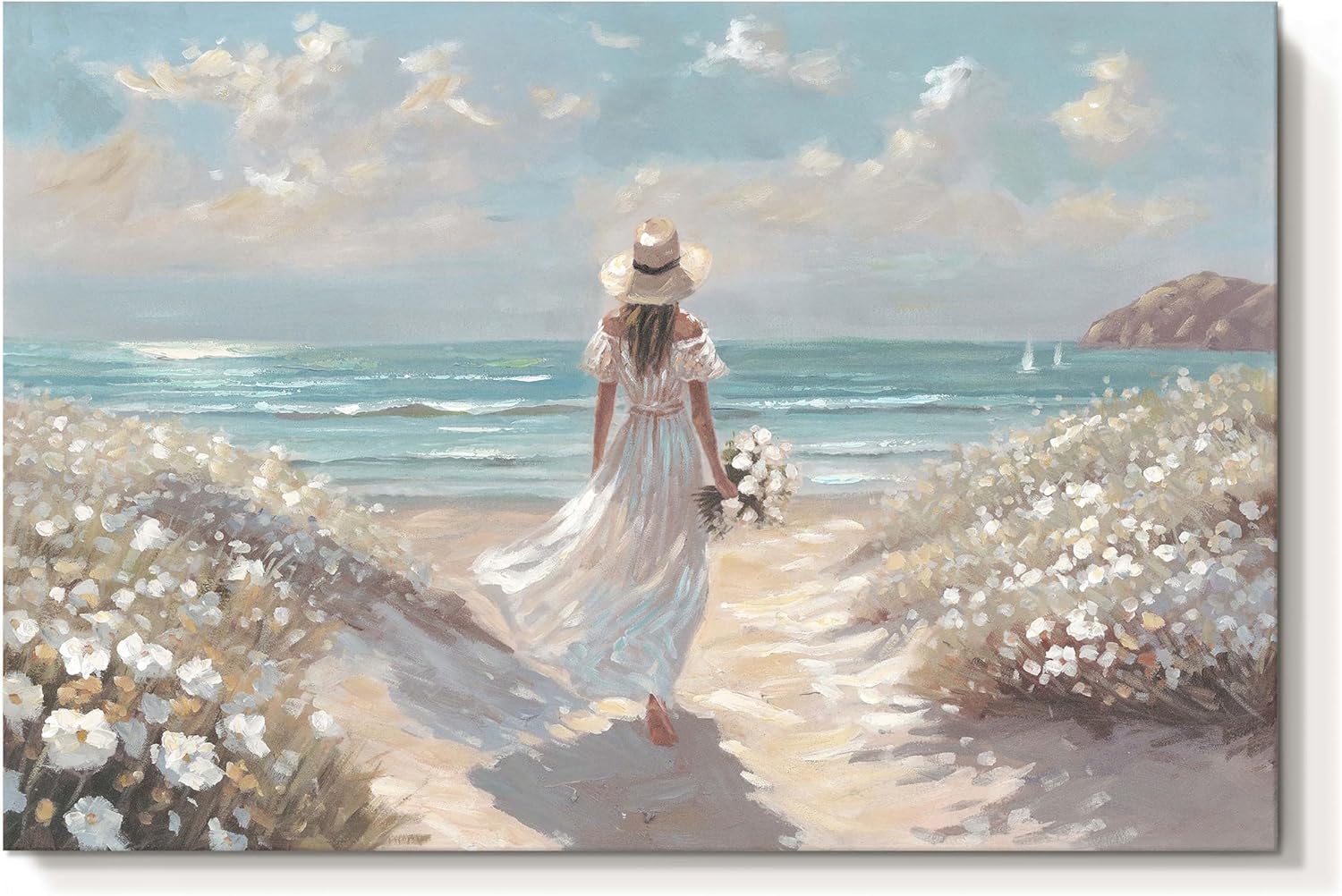- Premium Beach House Artwork Crafted with gallery-wrapped canvas and a solid wood frame, this ocean wall art withstands daily wear. The textured brushstrokes mimic real seascape paintings, making it ideal for coastal home decor.