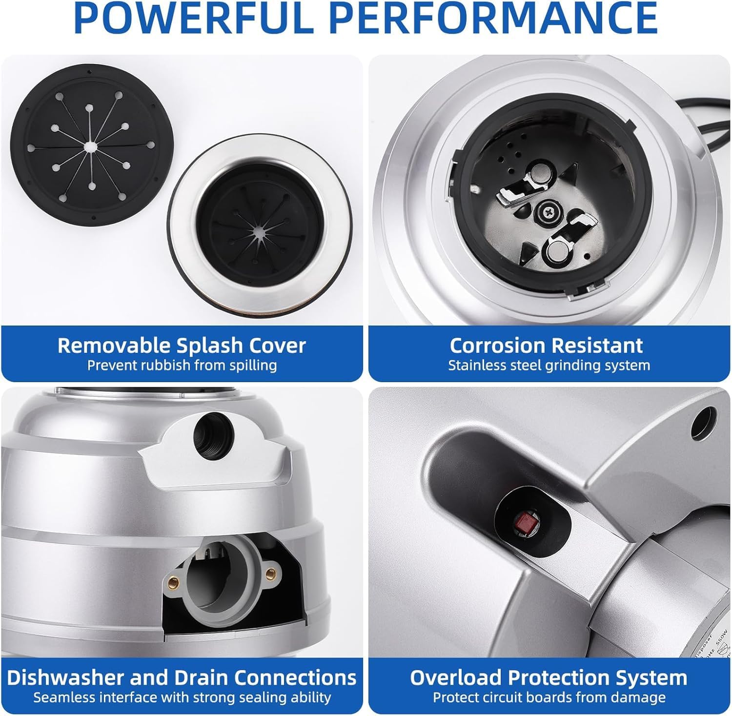 - Durable construction: Equipped with overload protection, this garbage disposer uses corrosion-resistant stainless steel grinding components and an integrated overload protection system to prevent overheating and circuit damage, ensuring your sink garbage disposal tasks are long-lasting and reliable.