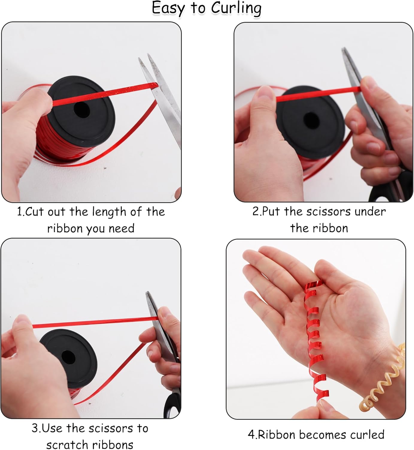 - Easy to Make Curls: You could use scissors to scratch the ribbon quickly to make it curled and divide into several small strings. Or you could use surround a round pen with the ribbon to make it curled. Ideal curling ribbon for decorations, ribbon for gift wrapping, ribbons for crafts