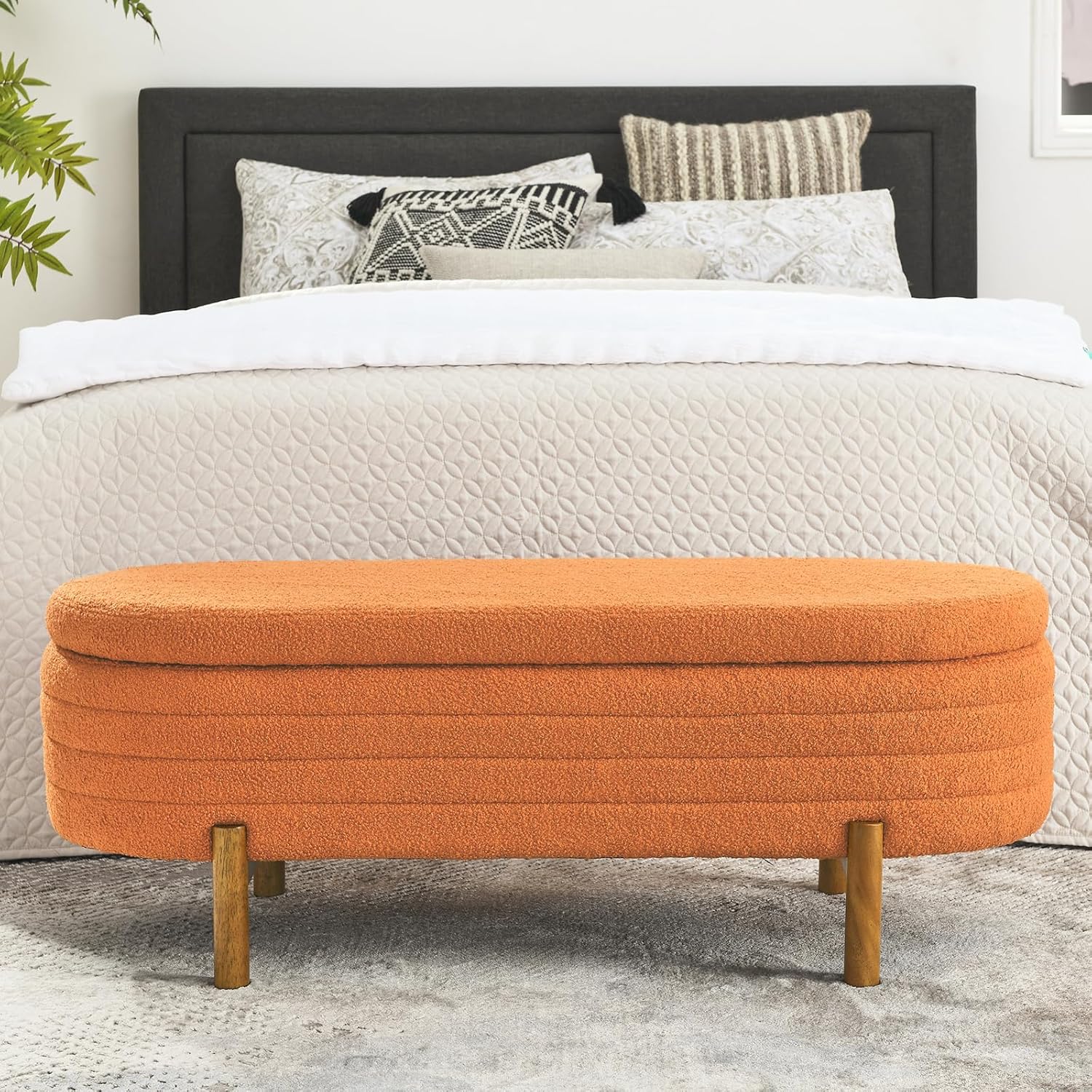 Furniliving 46” Storage Benches, End of Bed Bench with Button-Tufted Large Upholstered Storage Ottoman Teddy Window Bench with Storage Shoe Cabinet Bench, for Bedroom, Entryway, Closet, Orange
