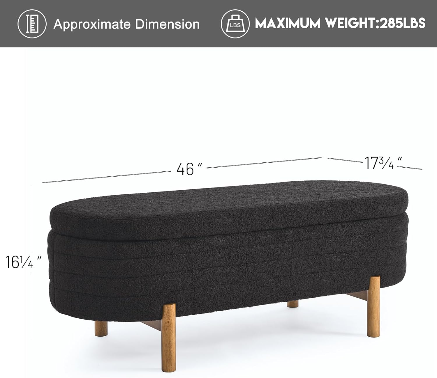 - ·Large Storage Space:This bedroom storage bench offers ample room to store blankets, toys, clothes, books, and more. The bench for end of bed helps you to keep everything organized. The four durable legs are crafted from selected solid wood for long-lasting use. The elegant black coating not only stabilizes the ottoman for bedroom but also safeguards the floor from scratches.