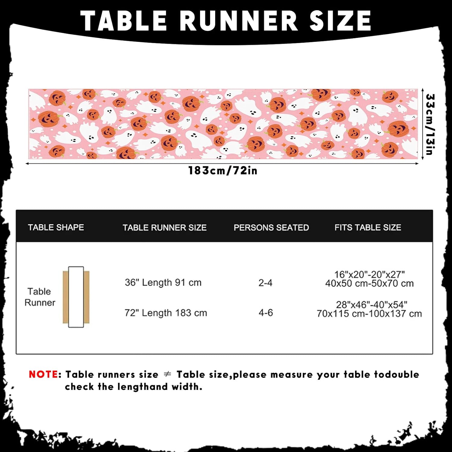 Halloween Table Runner Cute Spooky Ghost Pumpkin Table Linen Runner Pink Kitchen Dining Decoration Holiday Halloween Table Decoration for Holiday Indoor Outdoor Home Party Decor 13x72 Inch