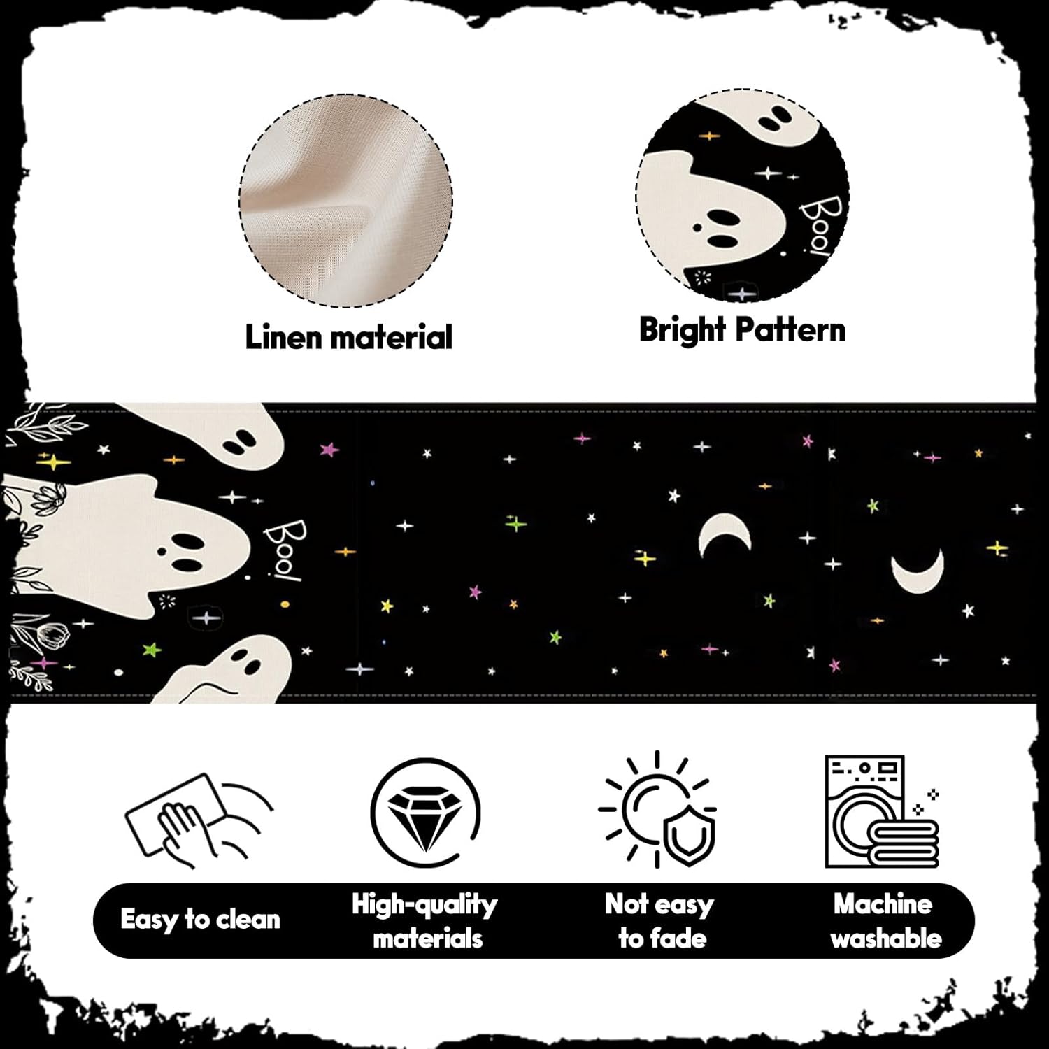 - Package Content: Includes 1 Halloween table runner (13x72 inches), printed with ghost patterns and classic Halloween elements, instantly turning your dining table into the focus of the holiday
