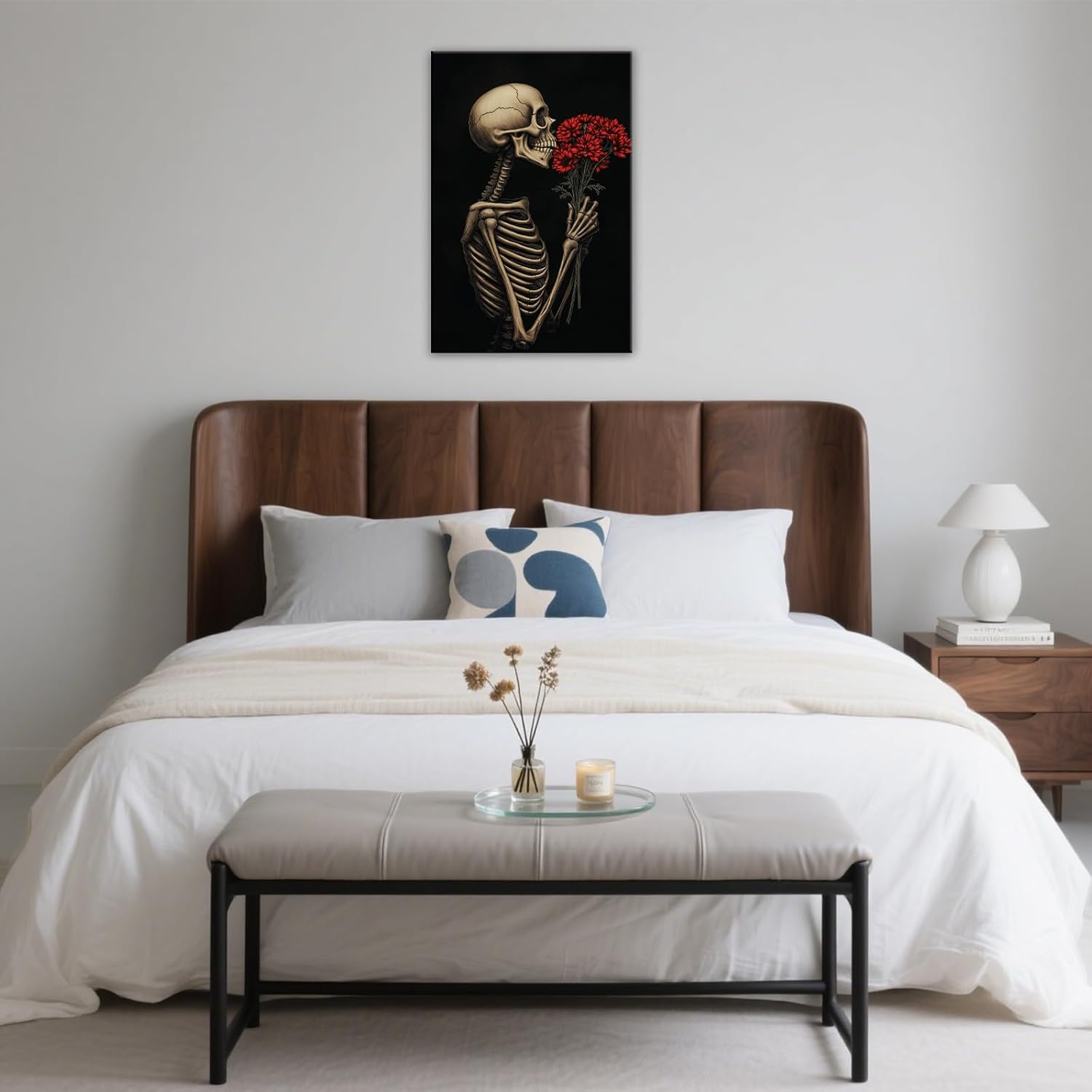 OAAPITI Red Rose Skull Wall Art Dark Themed Skeleton Painting Modern Artwork for Gothic Home Decor(Artwork-5,12"x18")