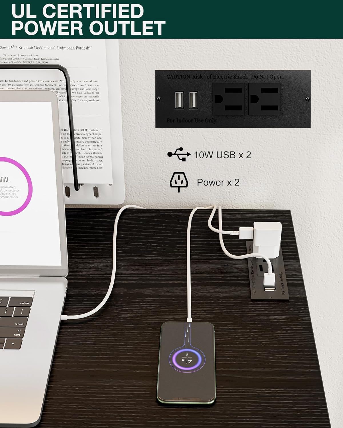 - 👍𝗜𝗡𝗧𝗘𝗚𝗥𝗔𝗧𝗘𝗗 𝗣𝗢𝗪𝗘𝗥 𝗛𝗨𝗕 – 𝗖𝗛𝗔𝗥𝗚𝗘 𝗘𝗩𝗘𝗥𝗬𝗧𝗛𝗜𝗡𝗚 𝗔𝗧 𝗢𝗡𝗖𝗘 — Stay powered and productive with 2 built-in AC outlets and 2 USB ports—perfect for laptops, phones, tablets, and more. No more messy extension cords or reaching for distant plugs; this smart design keeps all your devices charged and your workspace neat.