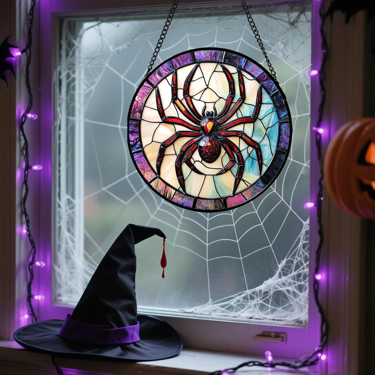 - Easy to Hang & Display: Comes with a sturdy hanging chain. You can effortlessly hang it on any window, door, or wall. No complex installation needed, allowing you to quickly decorate your home for Halloween parties or daily festive vibes.