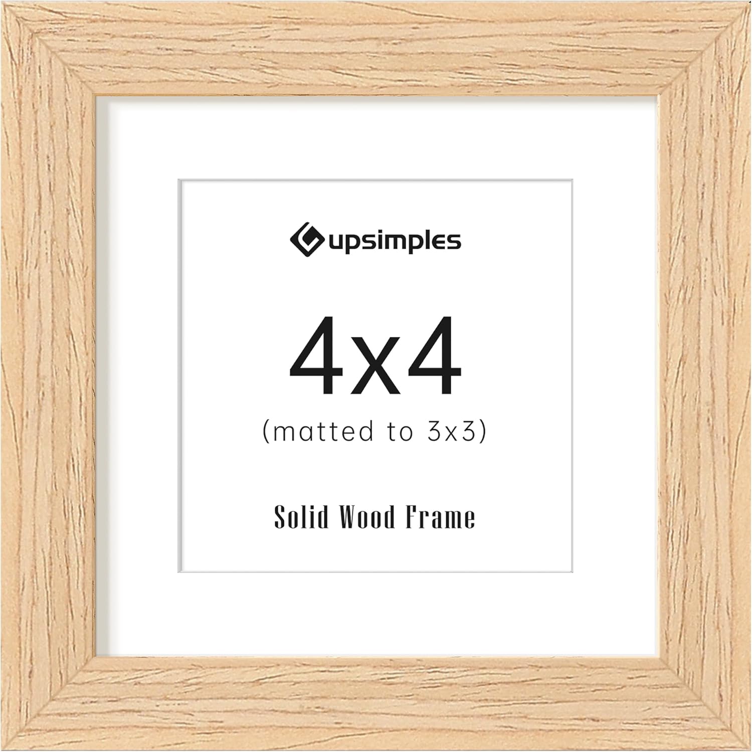 upsimples 4x4 Picture Frame, Natural Solid Wooden Picture Frames, Display 3x3 with Mat or 4 x 4 Without Mat, Wall or Tabletop, 1 Pack, Natural