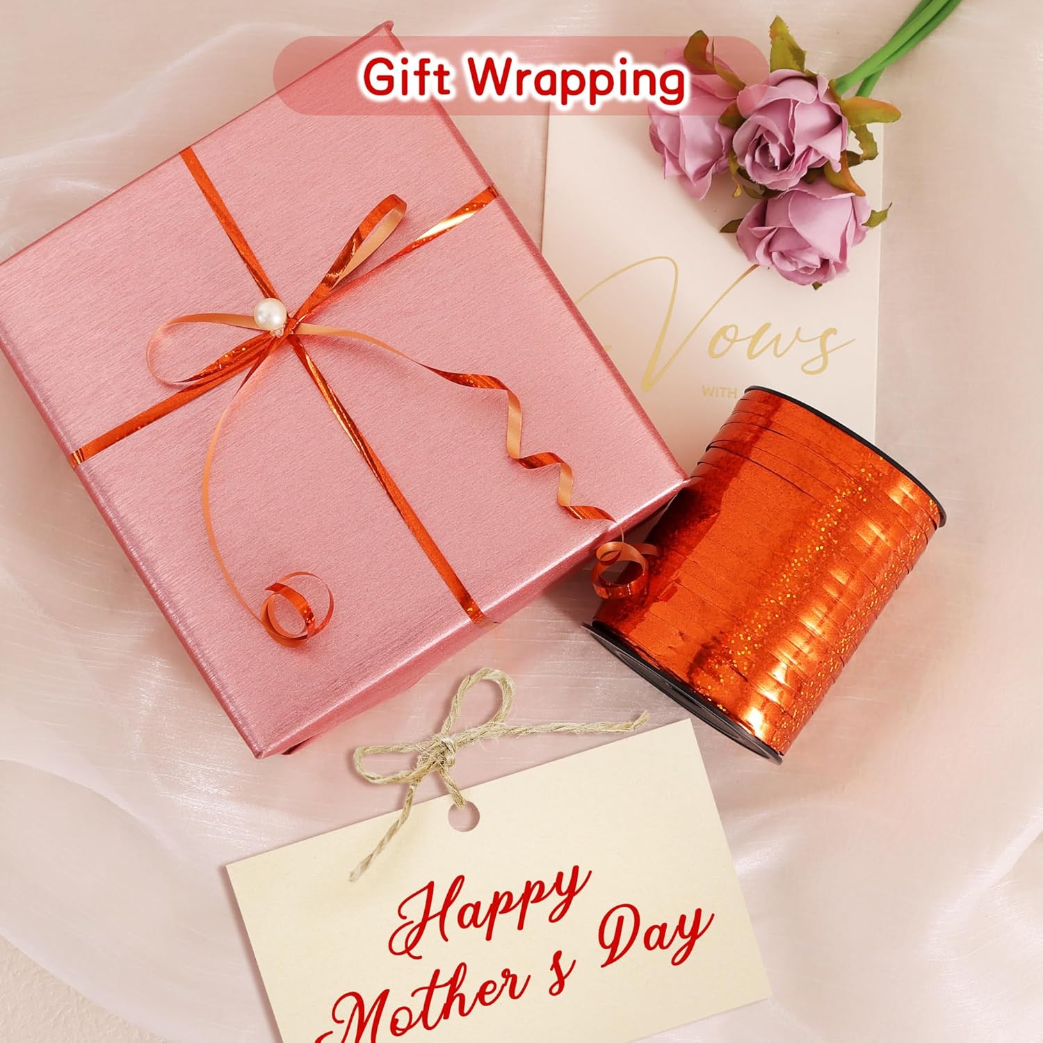 BEISHIDA 500 Yards Orange Ribbon Crimped Curling, Balloon String Shiny Metallic Roll for Gift Wrapping Ribbon Birthday Halloween Fall Harvest Retirement Party Decorations