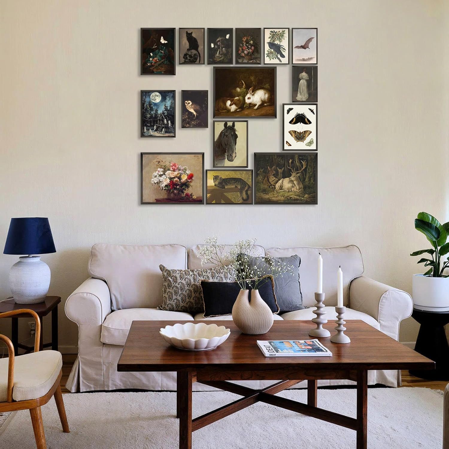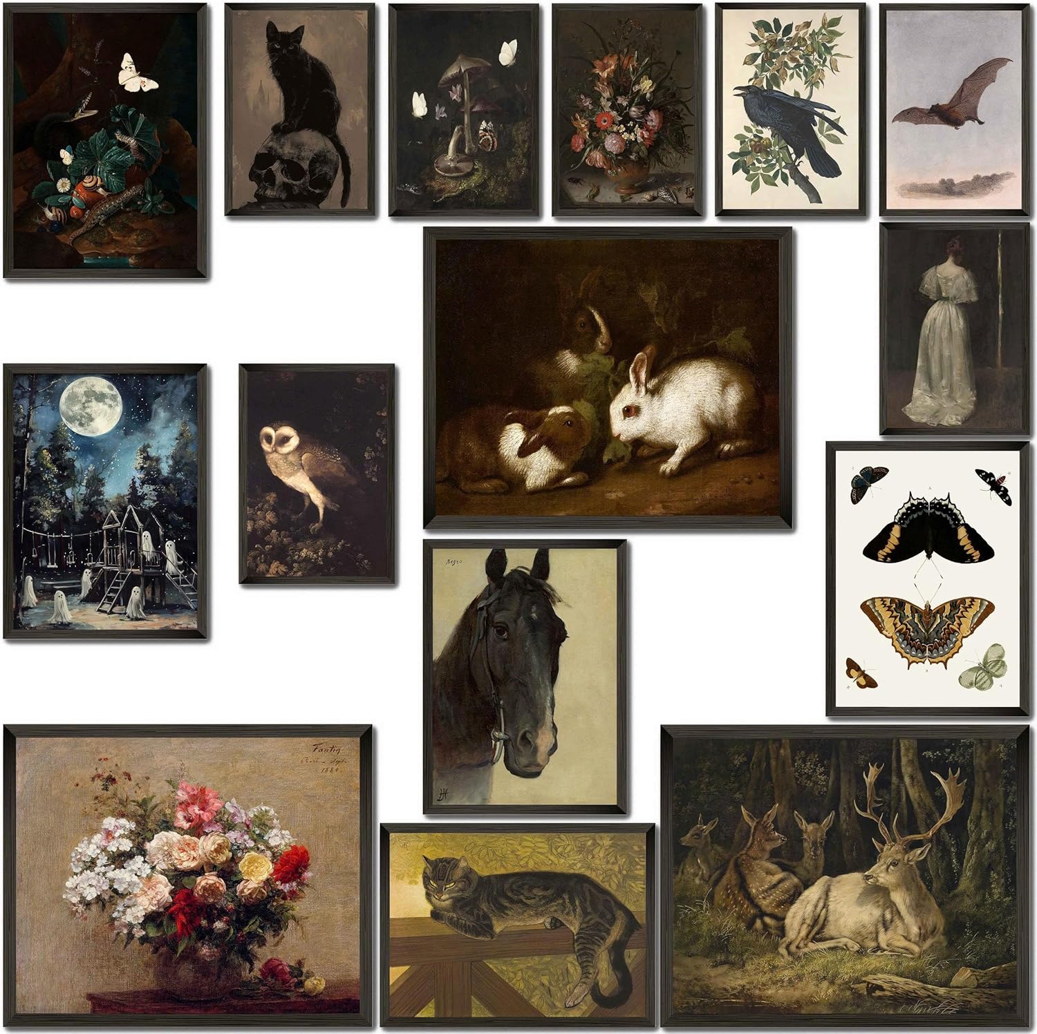 - 🖤 Gothic-Inspired Wall Art Set: This curated collection includes: 3 prints in 8x10 inches 4 prints in 5x7 inches 5 prints in 4x6 inches From moody animals to enchanting nature themes, these dark cottagecore prints infuse your room with forest magic, gothic elegance, and whimsical charm.
