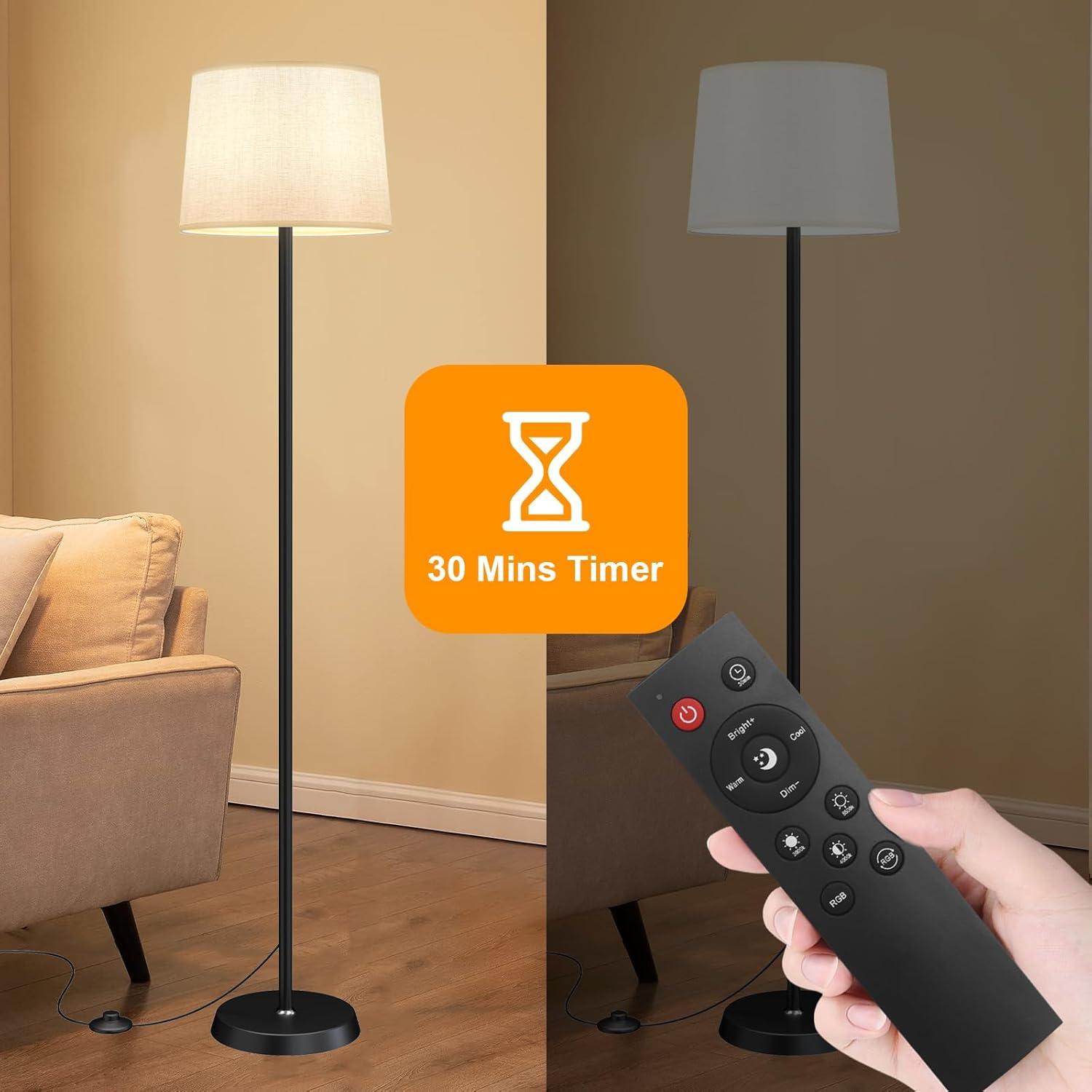 Floor Lamp for Living Room Bedroom,Modern Floor Lamp with Remote, Simple Design with Beige Shade,Foot Pedal Switch,Dimmable Colors Temperature,9W RGB LED Bulb