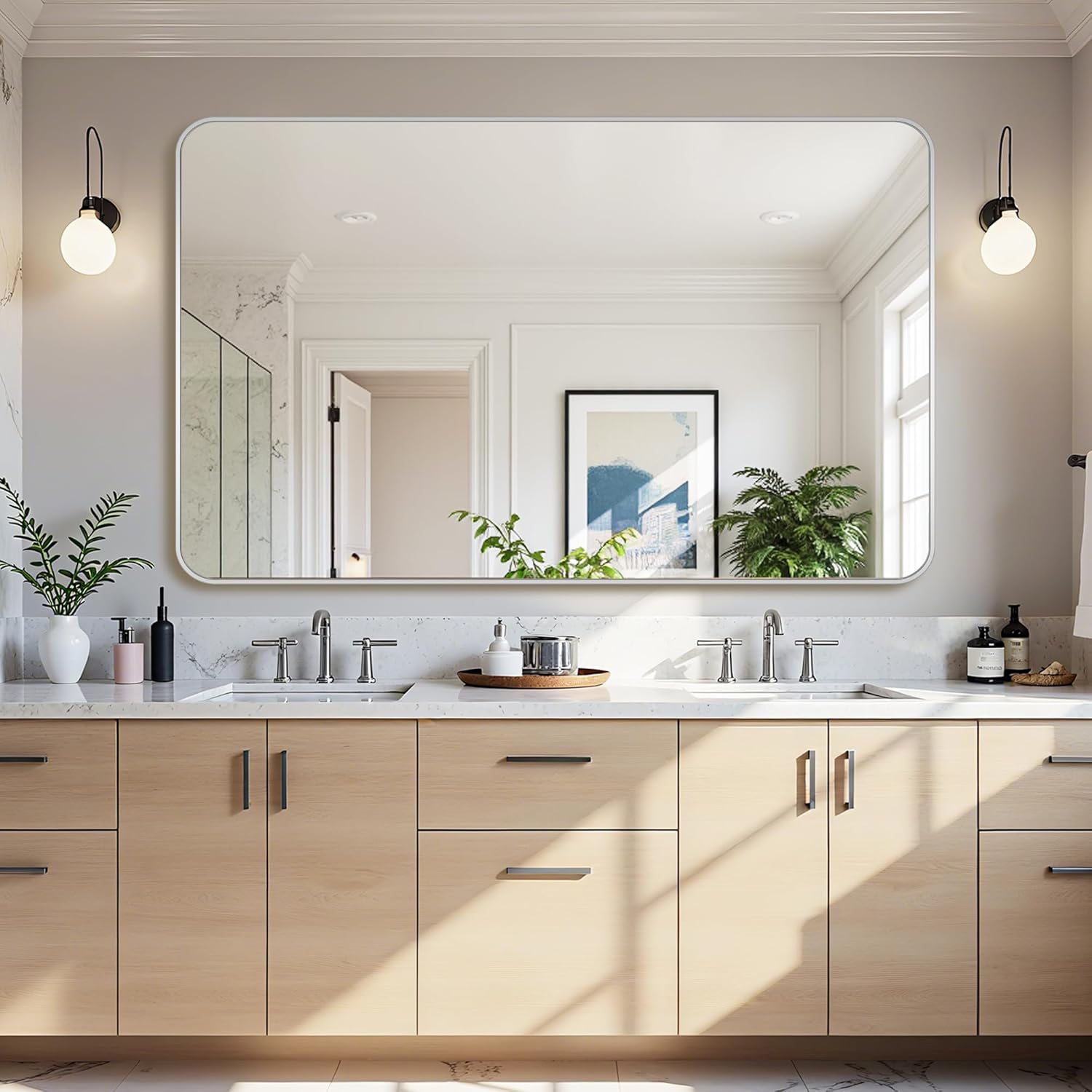 - High-Definition Clarity: The Furnbar wall-mounted bathroom mirror features upgraded HD glass that delivers clearer, distortion-free reflections, making it an ideal choice for your bathroom, vanity, or living room decor