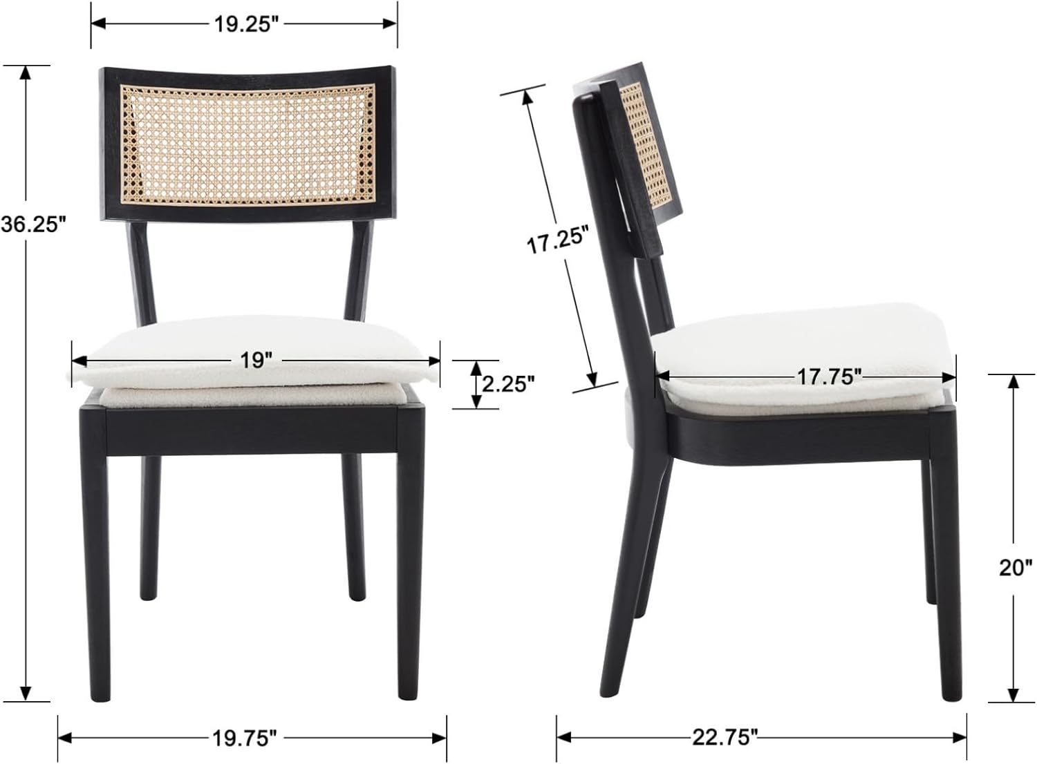 - Precise Dimensions (Imperial/Metric) :Total Dimensions: 19.75" W × 22.75" D × 36.25" H (50cm × 58cm × 92cm) Seat Size: 19" W × 17.75" D (48cm × 45cm)