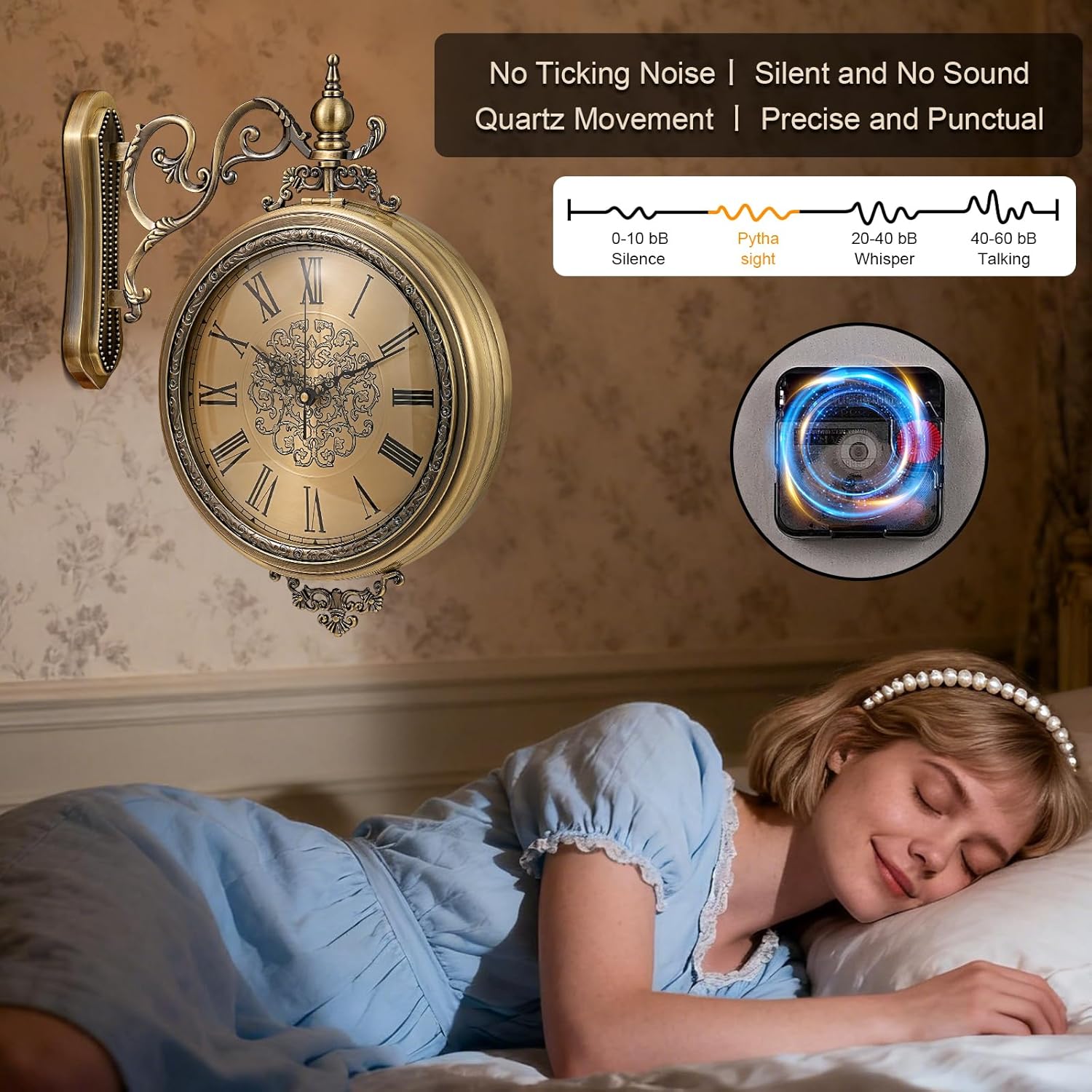 - šÆ [Double-Sided Vintage Design with Roman & Arabic Numerals] Admire classic elegance from any viewpoint. Our unique double sided wall clock displays sophisticated Roman numerals on one side and clear Arabic numerals on the other. This antique stationary design offers dual visibility in a stunning vintage package, making it a captivating hanging clock for your space.