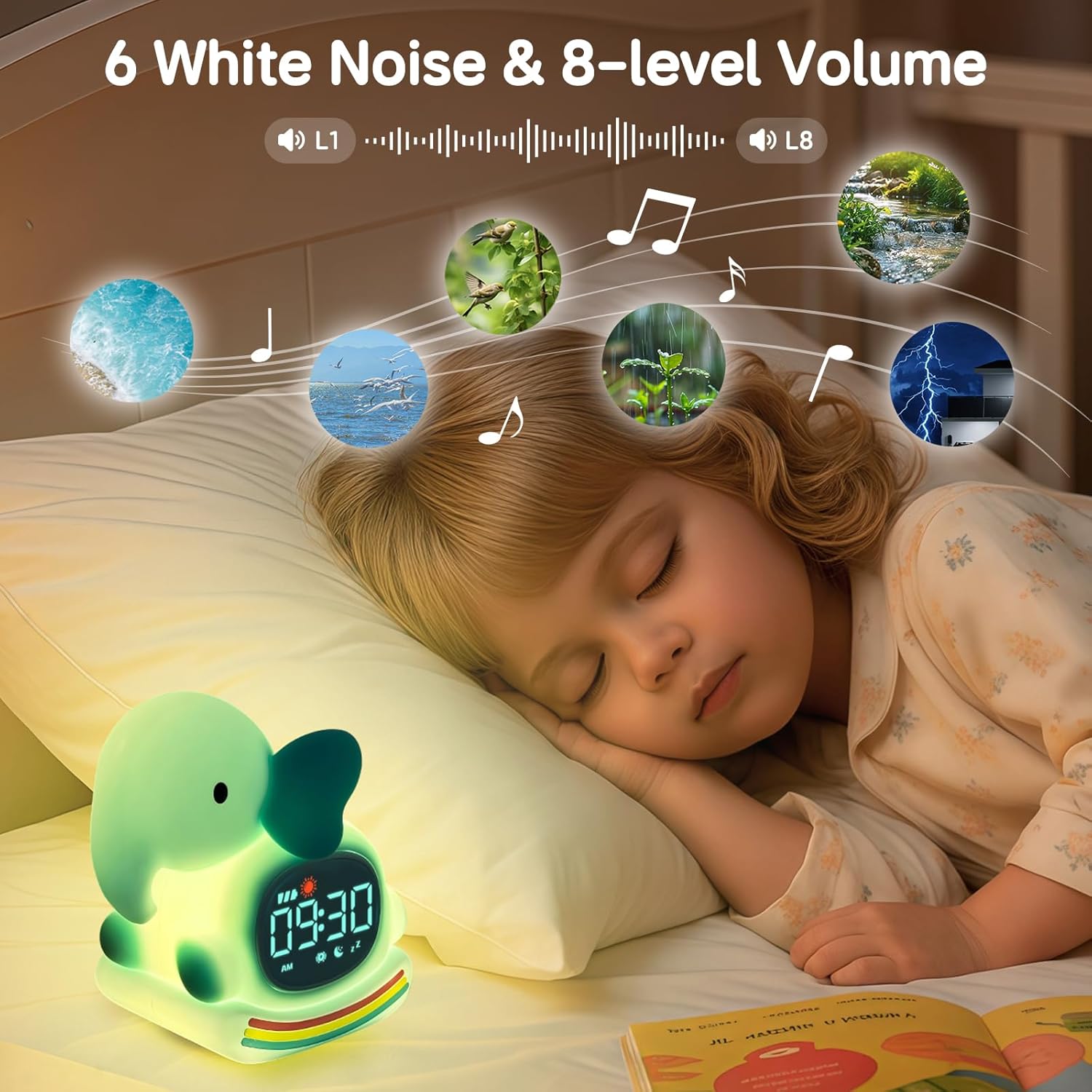 - Gentle Sleep Training: Help kids build healthy sleep routines with smart light cues: red light and white noise for bedtime, soft yellow sunrise light 30 minutes before wake-up, and a green "go" light when itās time to start the day.