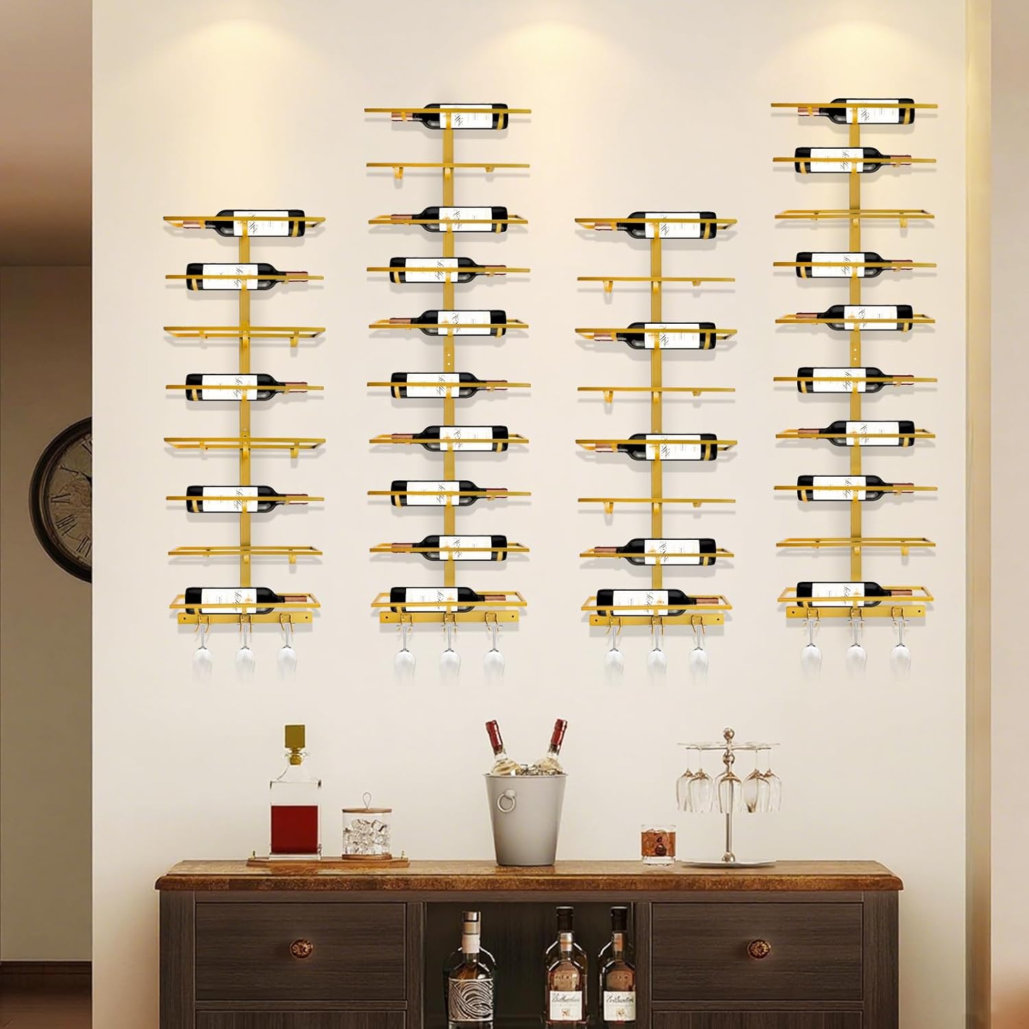 20 Bottle Wall Mount Wine Rack with Wine Glass Holder, Metal Wine Wall Rack, Wall Racks for Wine Bottles Display and Storage, Hanging Bottle Organizer for Living Dining Room Wine Cellar Bar (Gold)