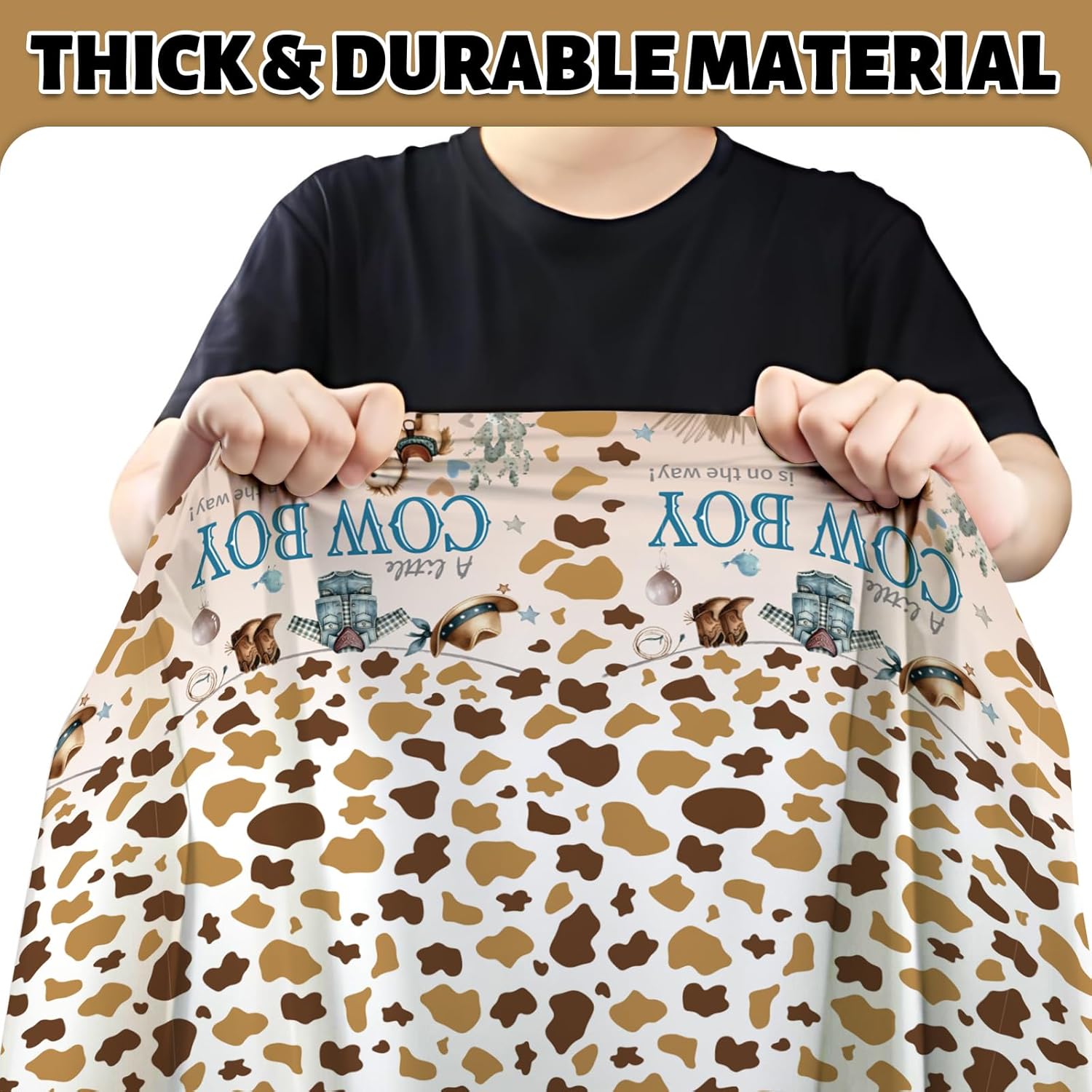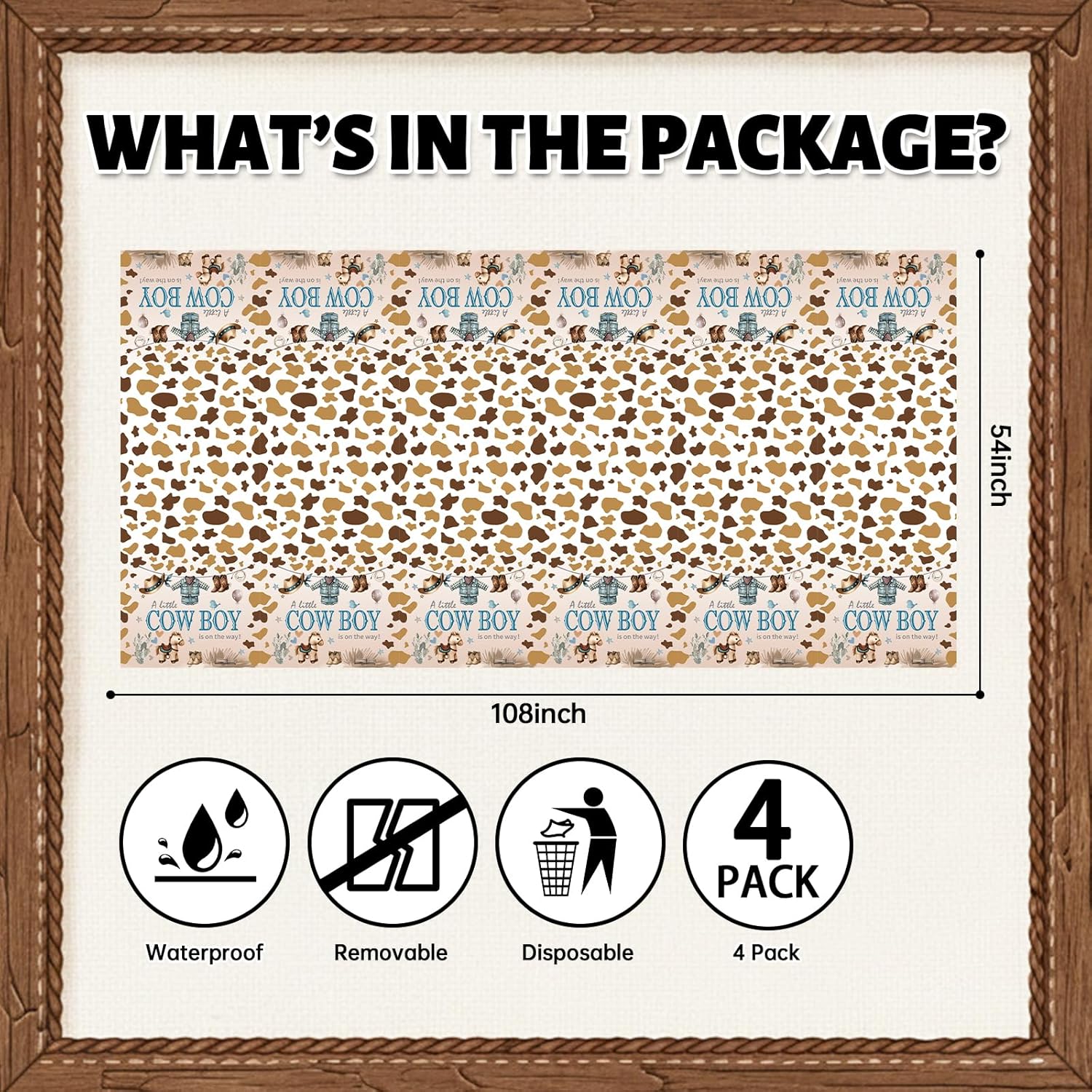 - 4-Pack Western Baby Shower Tablecloth Set: Each package includes 4 durable cowboy-themed tablecloths - perfect for covering banquet tables or creating coordinated western party zones!