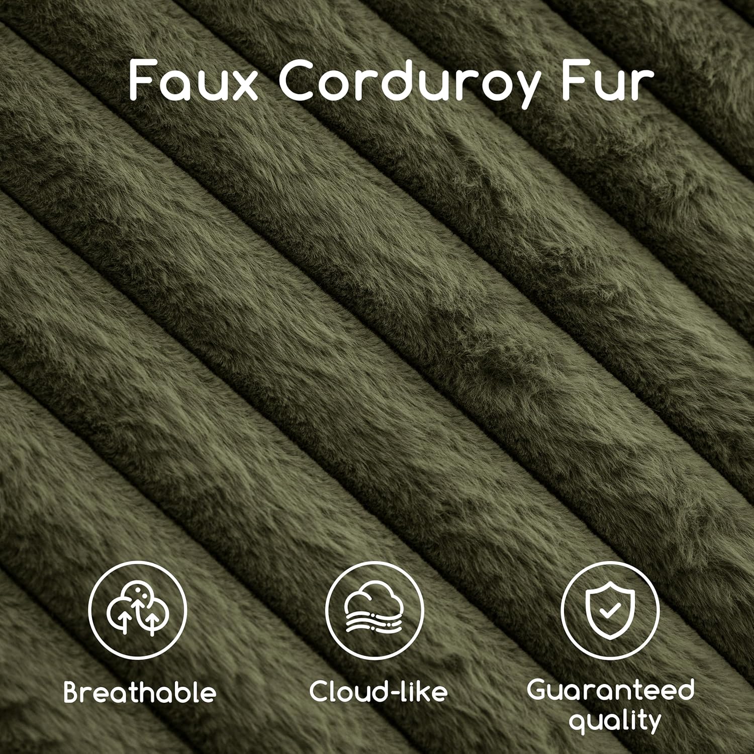 HIGOGOGO Round Stuffed Pouf Ottoman, Corduroy Poufs with High-Density Foam Filling, Furry and Fluffy Pouf Foot Stool Storage Ottoman, 20 X 15 Floor Poufs Foot Rest for Living Room, Green