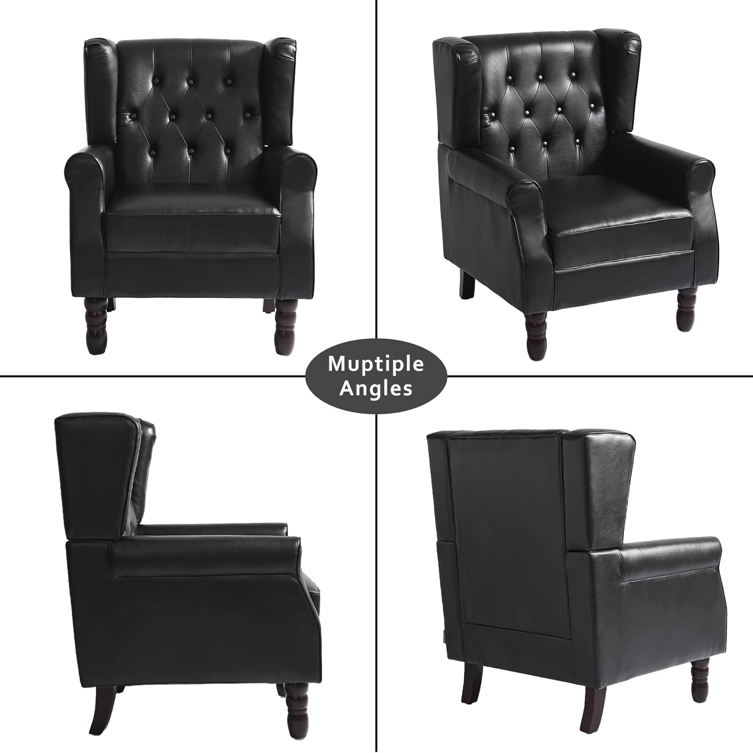 High Back Accent Chair,Upholstered Faux Leather Wingback Armchair with Solid Wood Legs for Small Spaces,Comfy Single Sofa Chair for Living Room,Bedroom,Office-Black