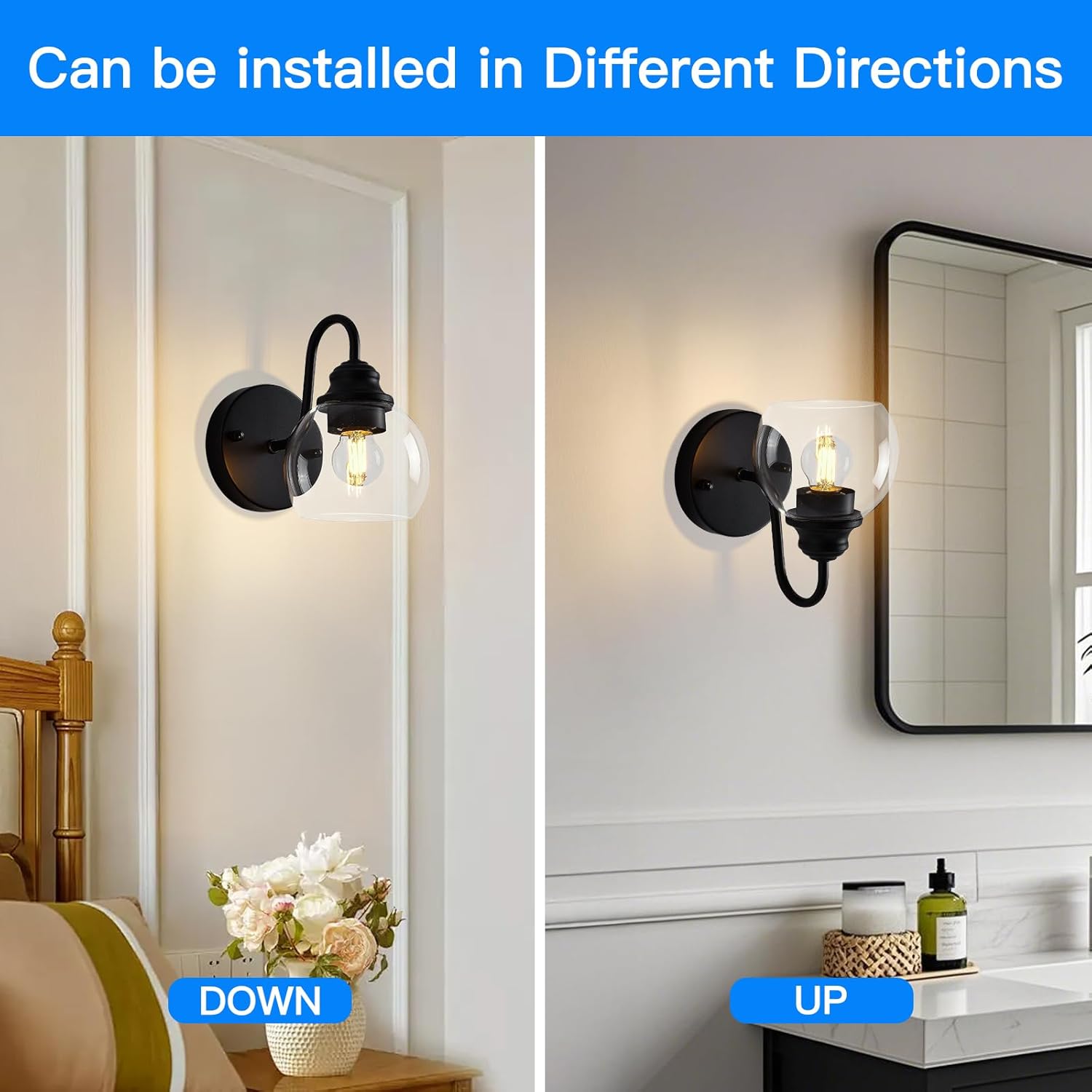 - [Excellent wall lamps]: Two sets of wall lamps are composed of transparent glass lampshades and metal bases. The transparent glass lampshades ensure good light transmittance. The gooseneck design not only restores the classic farmhouse style but also brings a touch of tenderness to your space, making it less rigid. The manufacturing process of matte black metal paint ensures that the wall lamps will not oxidize or fade.