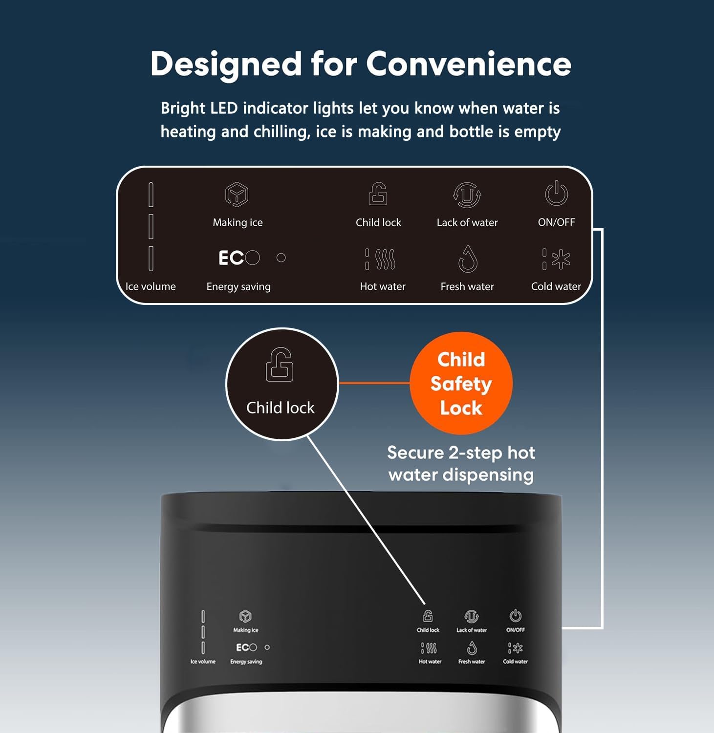- HOT,COLD&ROOM WATER: Capable of dispensing both ice and water, this item is multi-purpose and is essential for any setting for making ice, cold water , hot water and room-temperature water available for everyone .