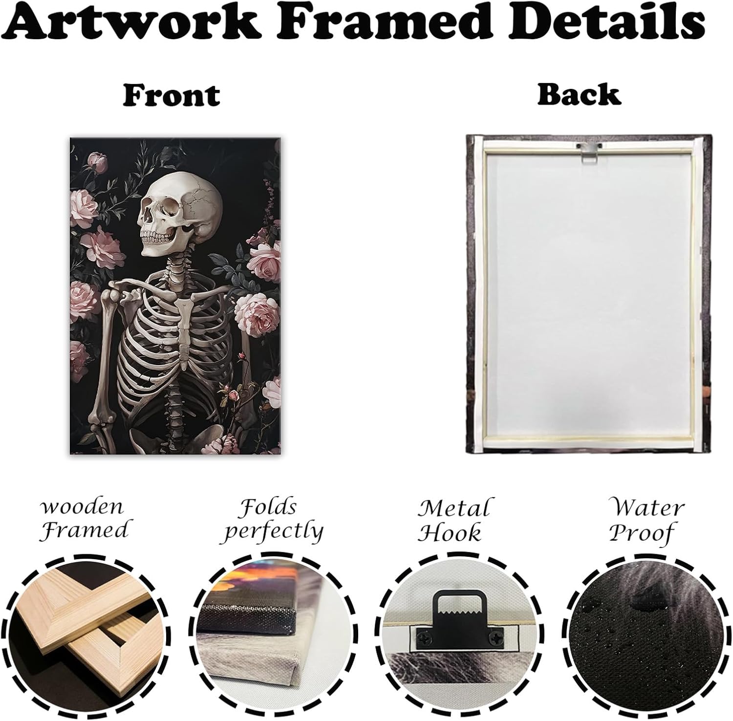 OAAPITI Skull Floral Wall Art Vintage Skeleton Portrait Canvas Print Dark Gothic Skull Art for Living Room Bedroom Home Wall Decor Ready to Hang(Artwork-10,28"x42")