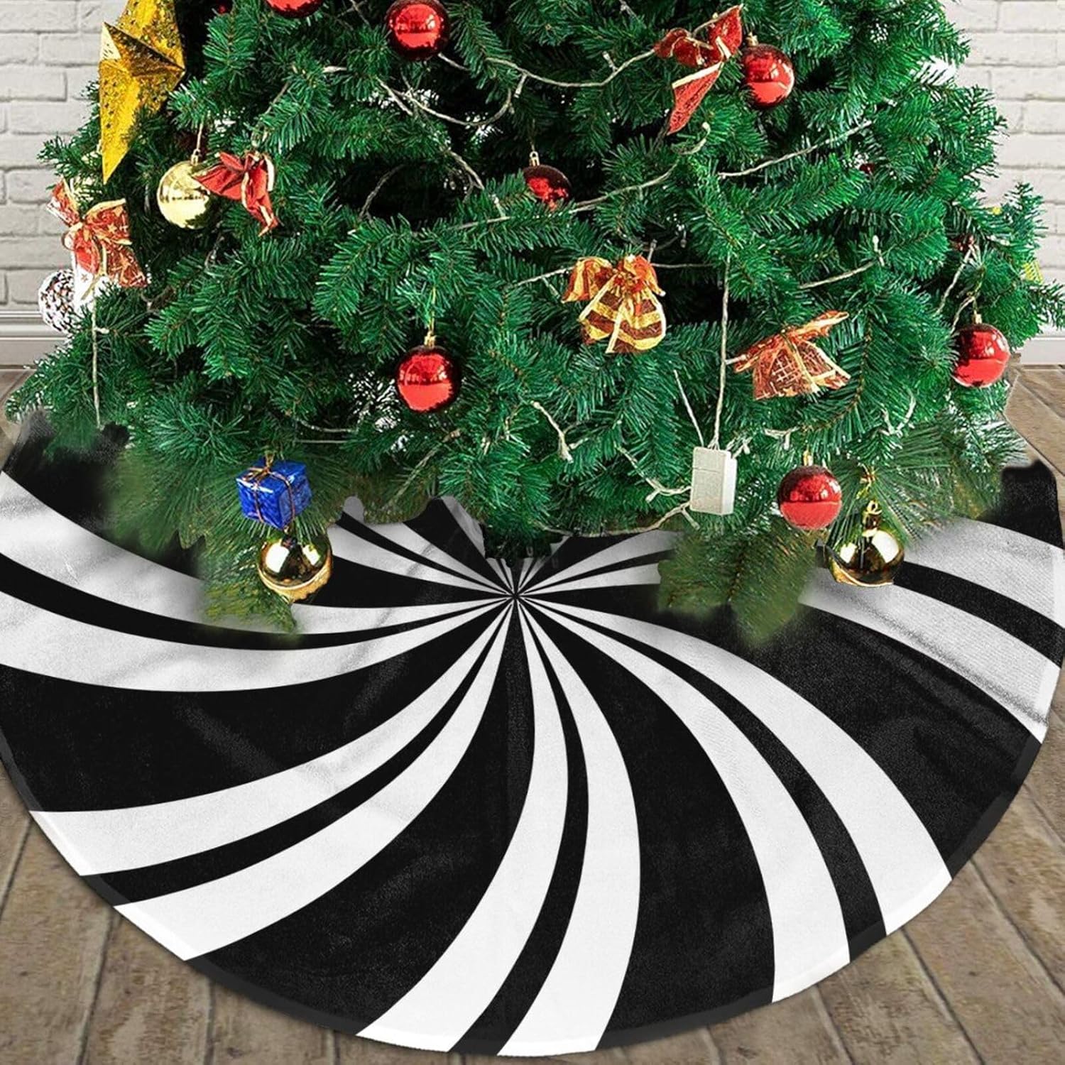 - Blending Classic with Innovation: Our Christmas tree skirt features a distinctive Mint Sugar Double Swirl Candy black pattern, merging traditional charm with a touch of modern elegance. This skirt promises to be a standout piece in your Christmas decor, setting a warm and romantic festive ambiance for your home. Don't miss out on this exquisite addition to your holiday season!