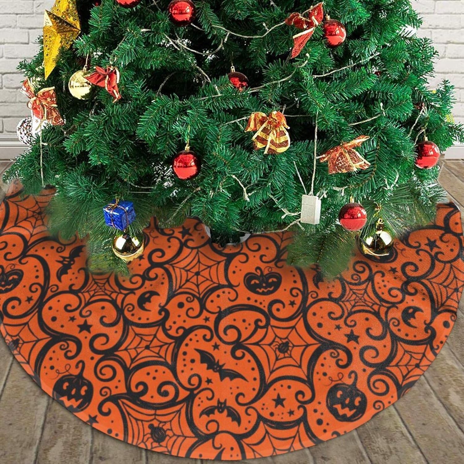 - Blending Classic with Innovation: Our Christmas tree skirt features a distinctive Halloween Pumpkin pattern, merging traditional charm with a touch of modern elegance. This skirt promises to be a standout piece in your Christmas decor, setting a warm and romantic festive ambiance for your home. Don't miss out on this exquisite addition to your holiday season!