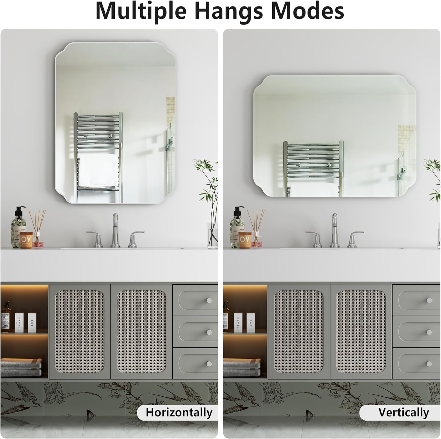 - FLEXIBLE MULTI-SCENE APPLICATION - Designed for hassle-free horizontal or vertical wall mounting, the beveled mirror edge complements diverse spacesābathrooms, hallways, bedrooms, and living roomsāto create personalized decor effortlessly.